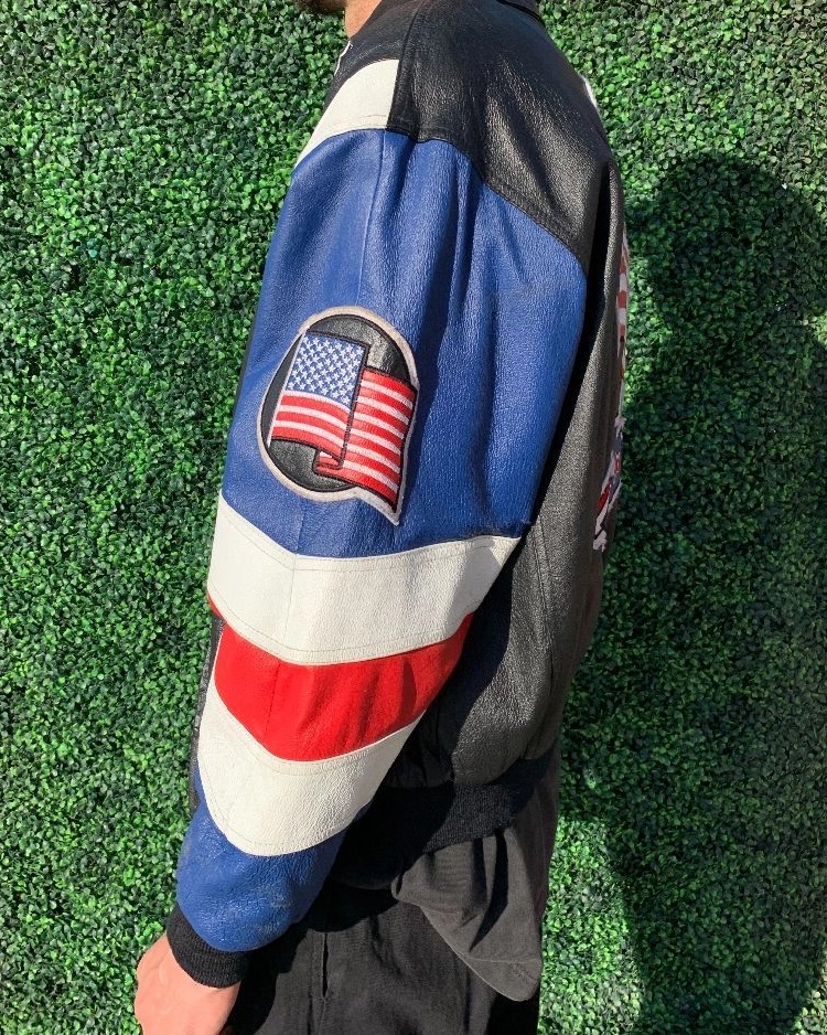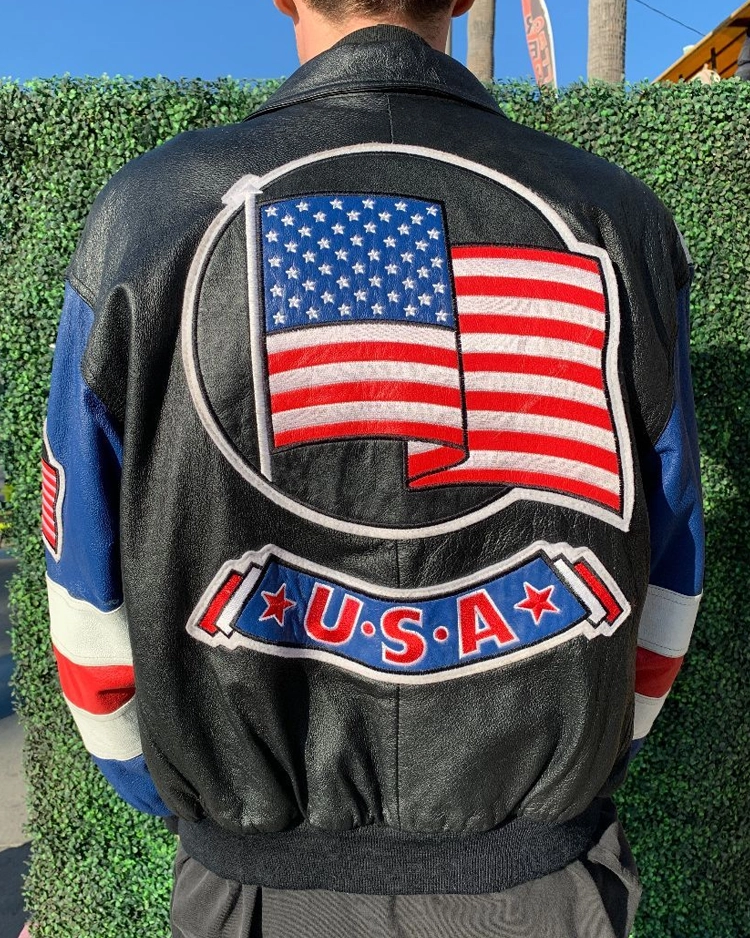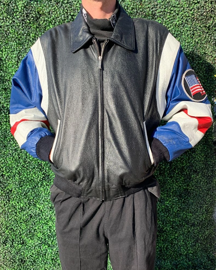 Embrace style and patriotism effortlessly with the Black And Blue American Flag USA Leather Bomber Jacket. Elevate your look and make a statement wherever you go. Order now and experience unparalleled quality and craftsmanship firsthand!