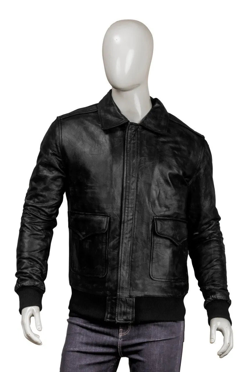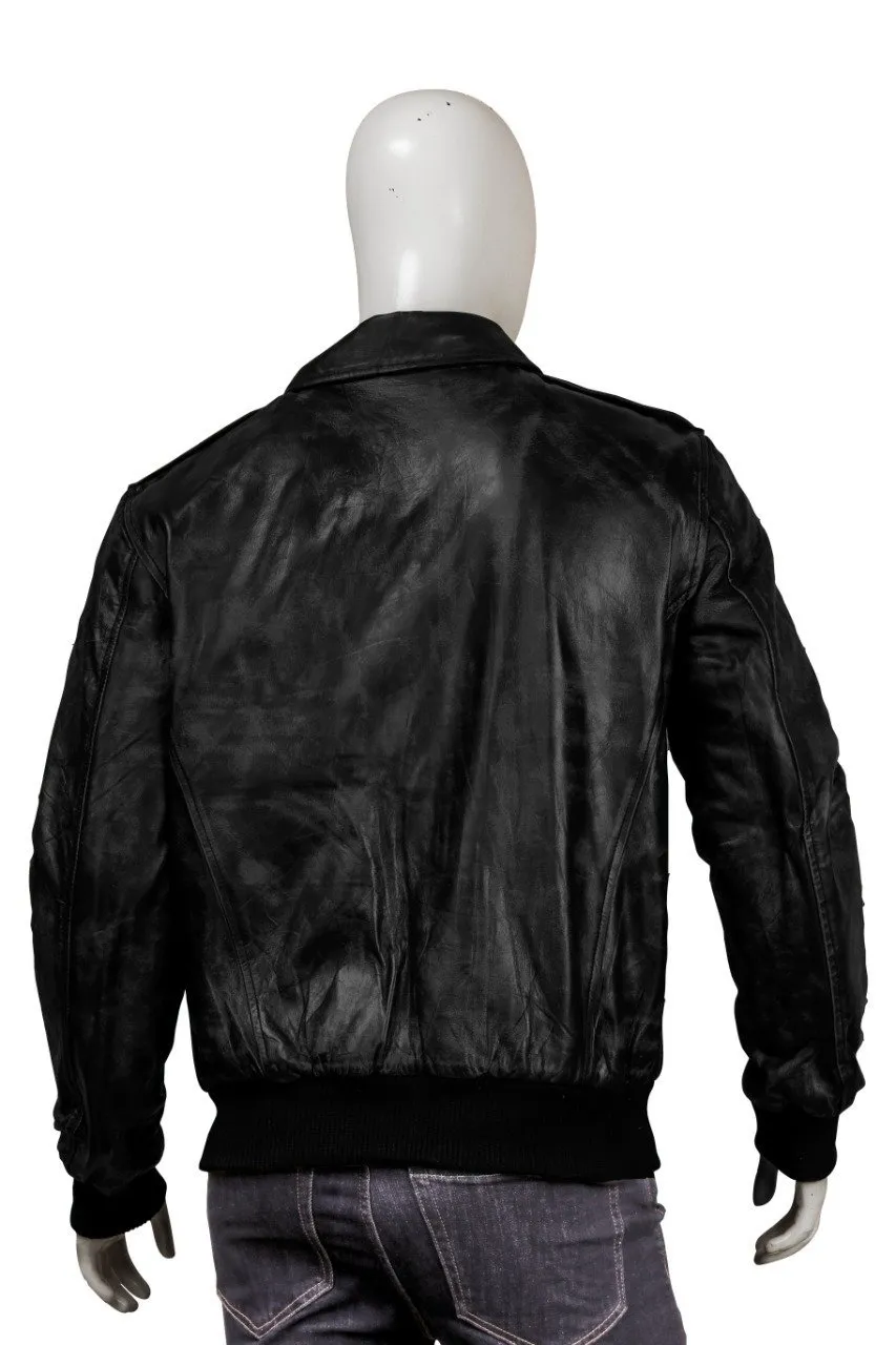 Black Bomber Real Sheepskin Leather Jacket