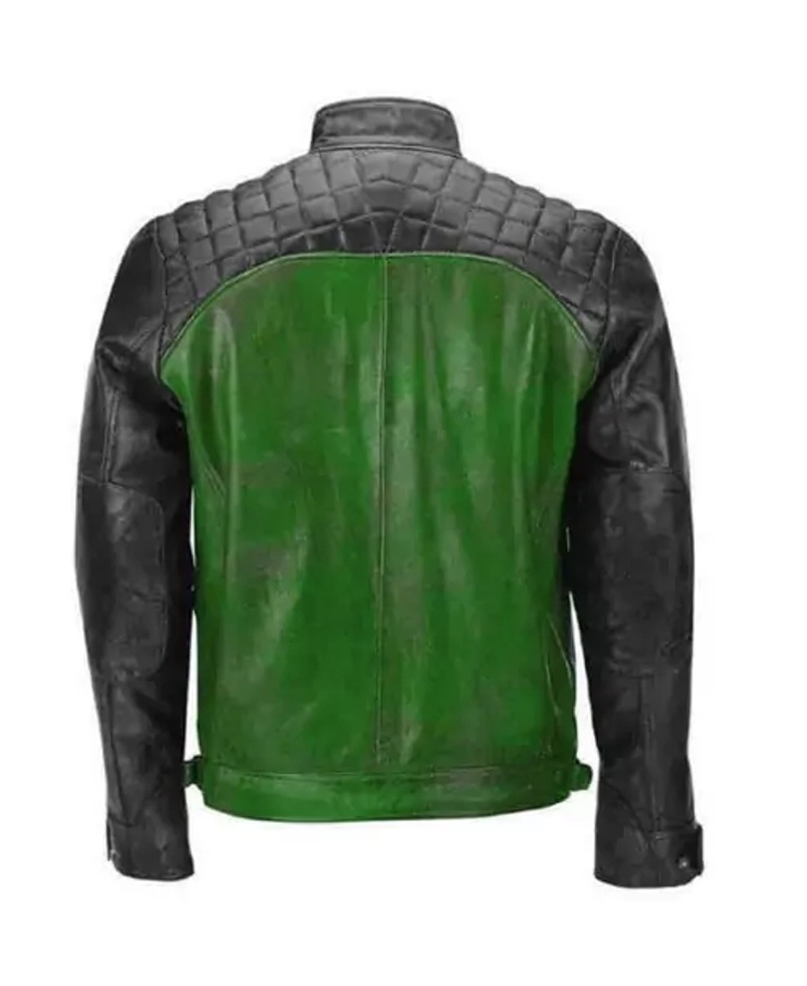 Black & Green Men Biker Leather Jacket