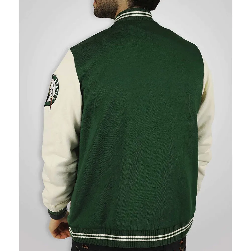Shop The Boston Celtics Green and Off White Varsity Jacket
