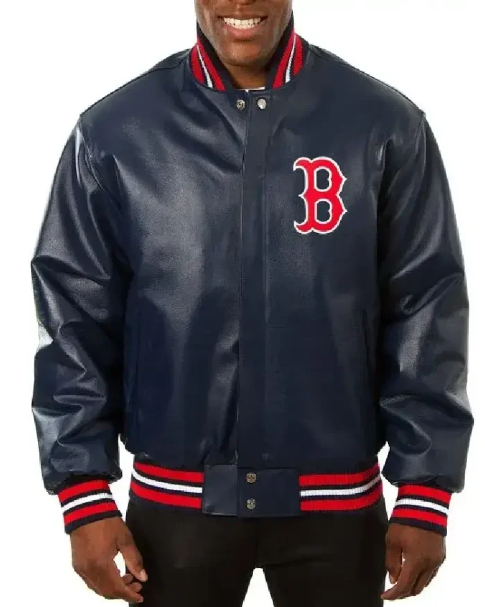 Boston Red Sox Bomber Navy Blue Leather Jacket