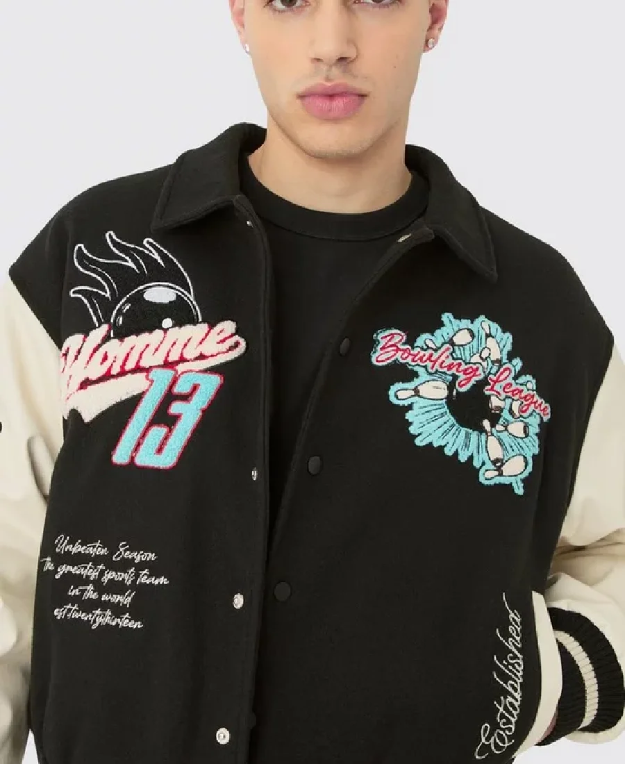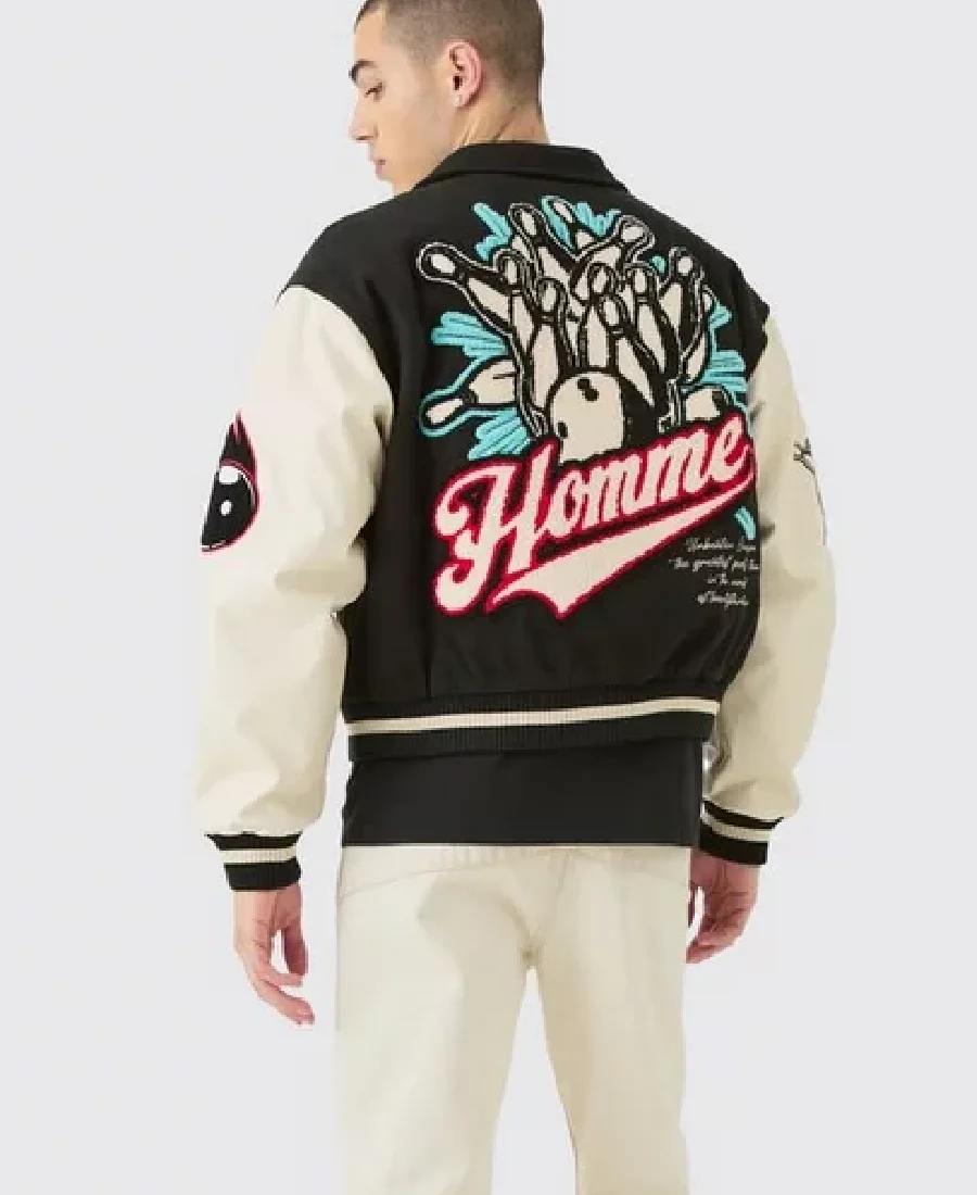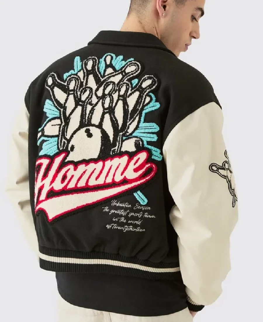 Boxy Melton & Pu Collared Varsity Jacket