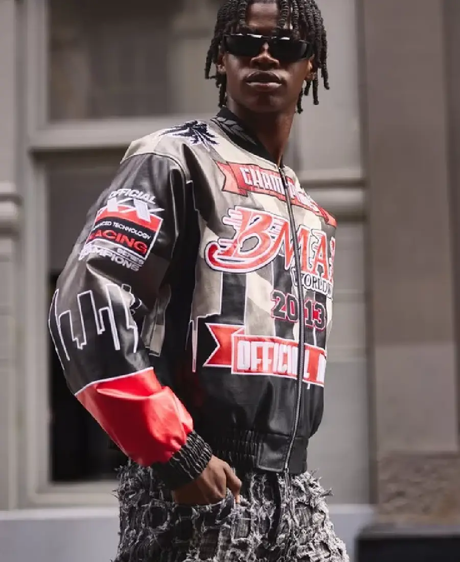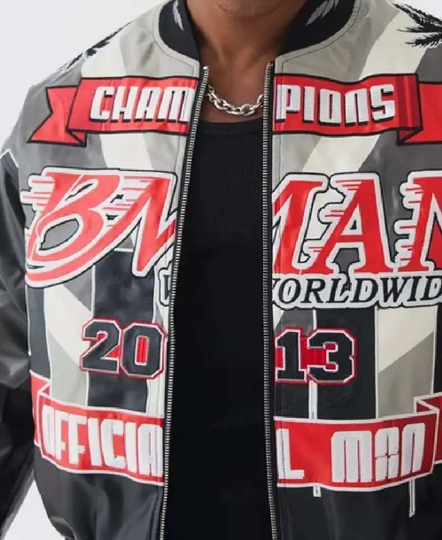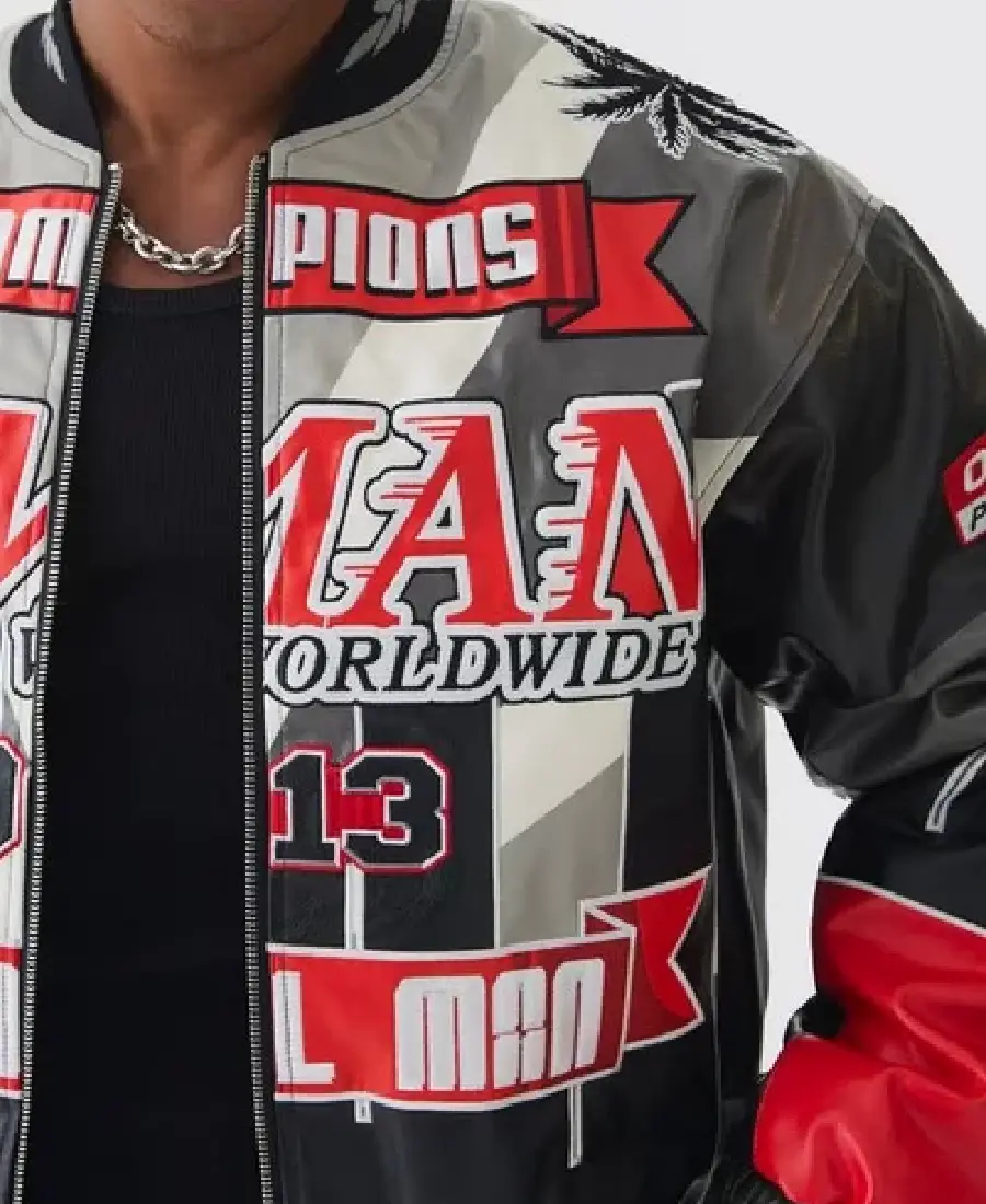 Boxy Official Man PU Black Varsity Jacket