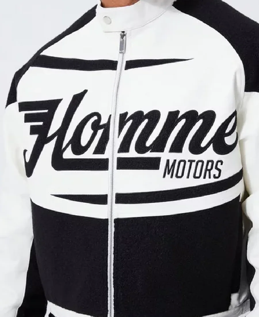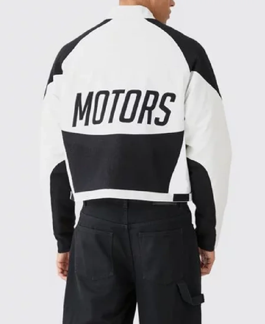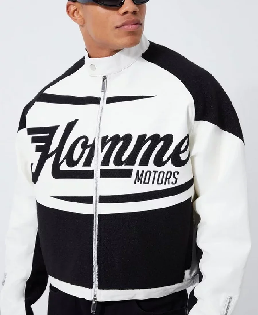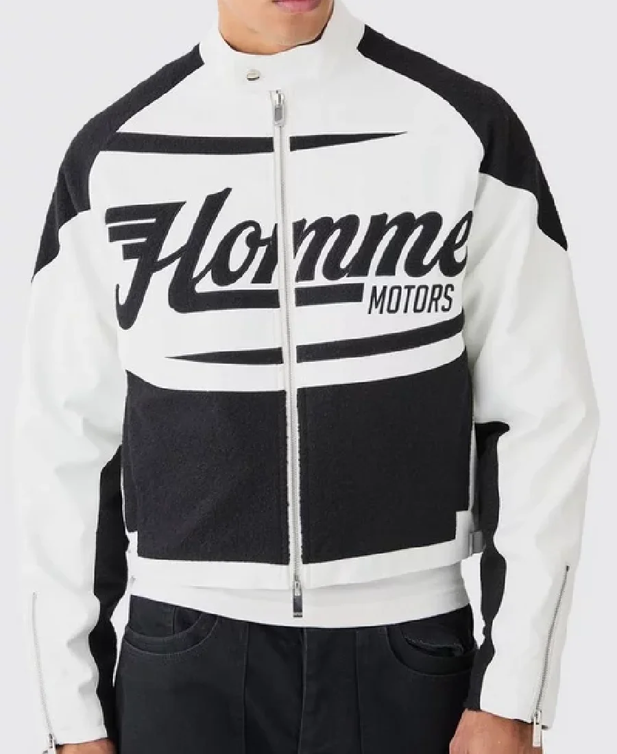 Boxy PU Boucle Panel Moto White and Black Jacket
