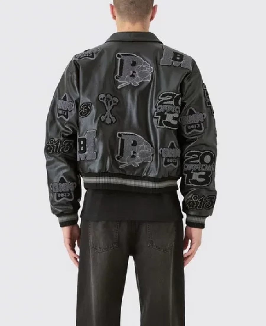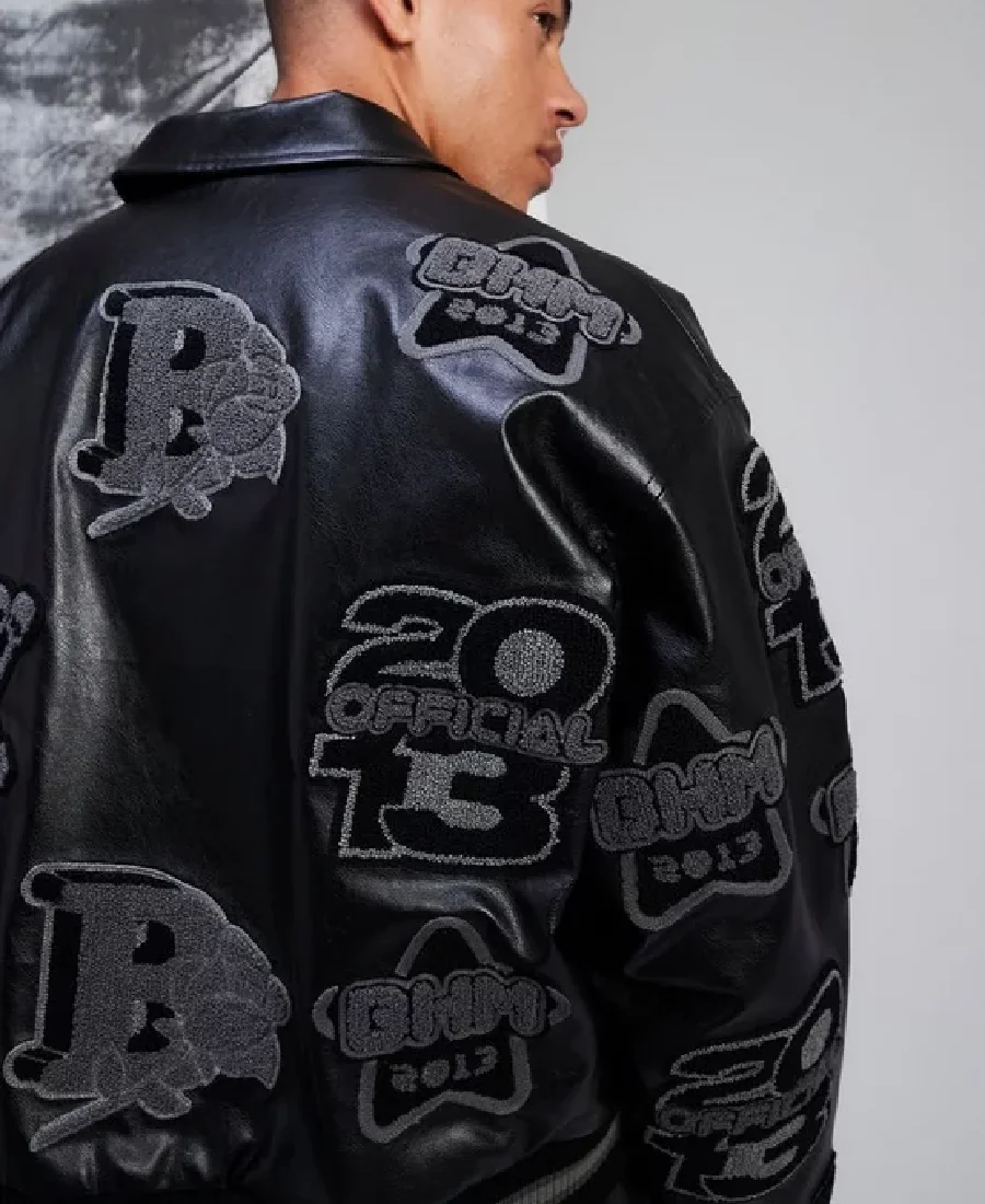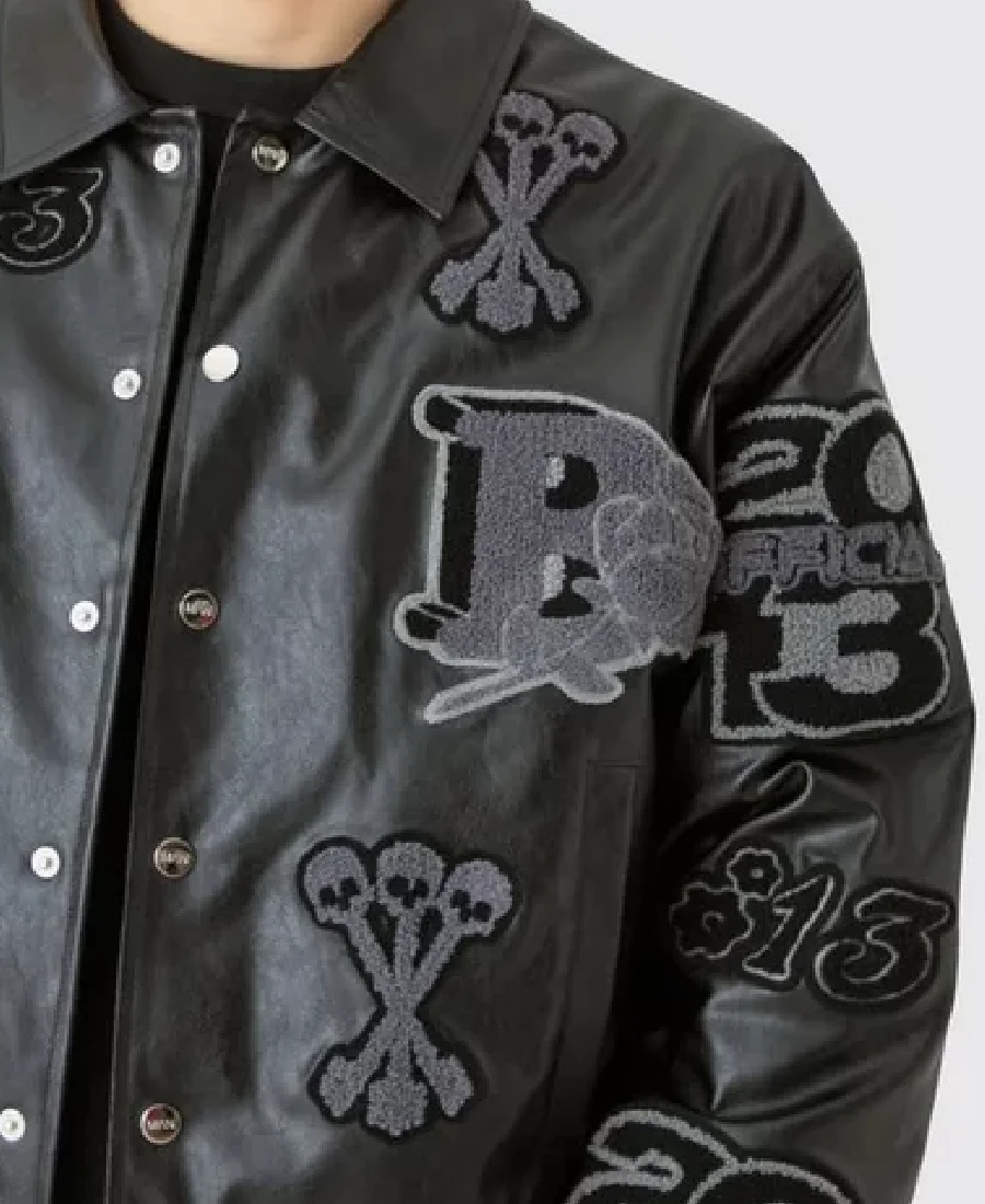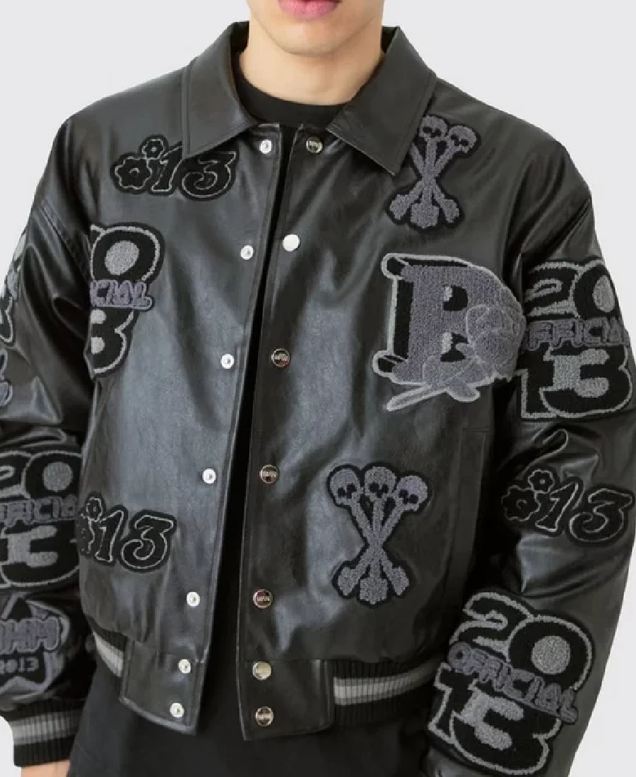 Boxy Pu Tonal Badge Varsity Jacket