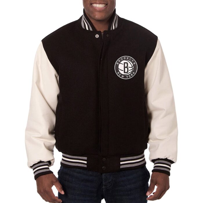 Brooklyn Nets Black And White Varsity Jacket