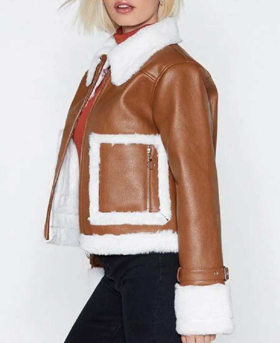 The Brown Cropped Aviator Leather Jacket is a cozy and stylish piece inspired by classic flight jackets. Made from genuine sheepskin leather, it has a soft yet durable feel that offers warmth and lasting quality. The fur collar and matching fur cuffs add extra insulation while giving the jacket a rich and inviting look. It features a front zipper closure that provides a secure fit and makes it easy to wear. The full length sleeves and cropped cut create a flattering shape that sits neatly at the waist. Two side pockets offer convenient space to keep your hands warm or carry small essentials. The fur lining inside adds a plush layer against the skin, making it ideal for colder days. Its warm brown tone and aviator design make it a dependable outerwear choice that pairs well with jeans or boots for a confident cold weather look.