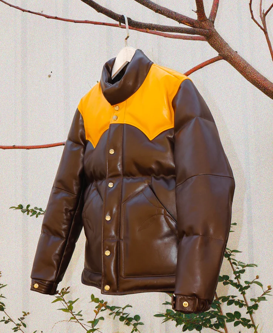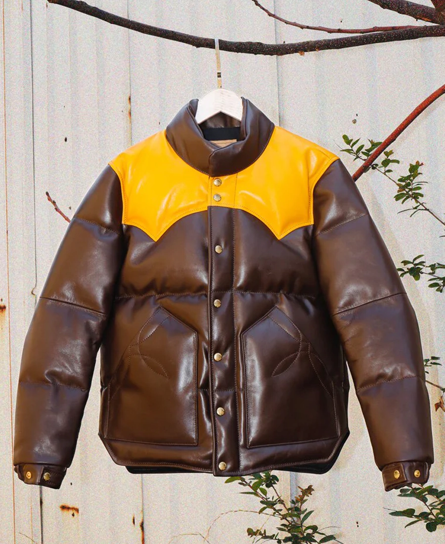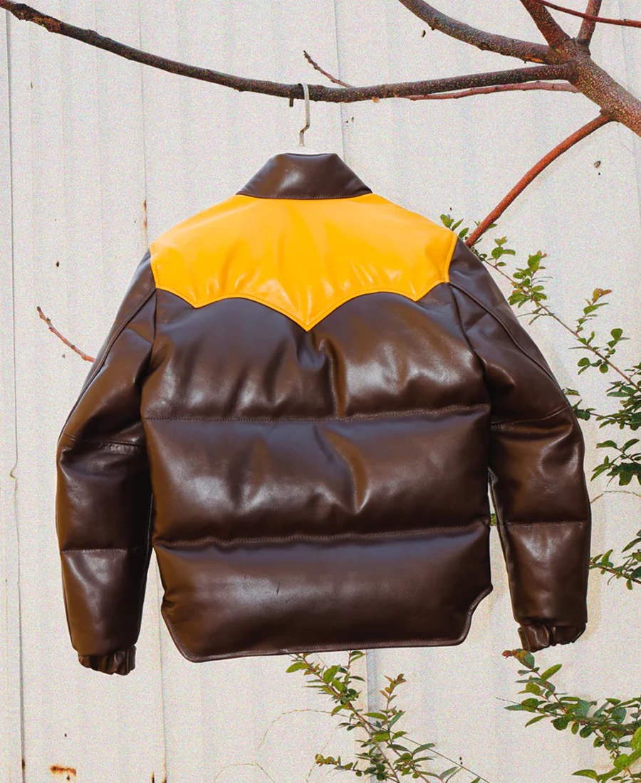 Shop Brown Designer Puffer Leather Jacket For Men And Women On Sale