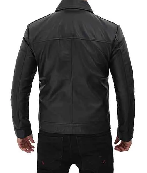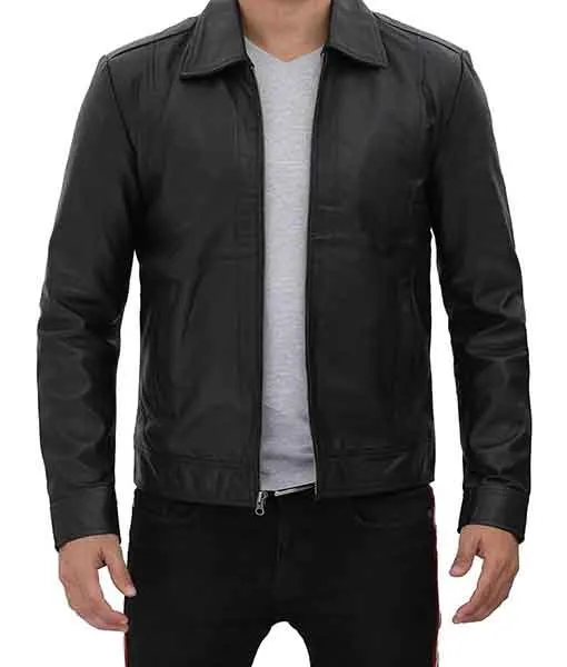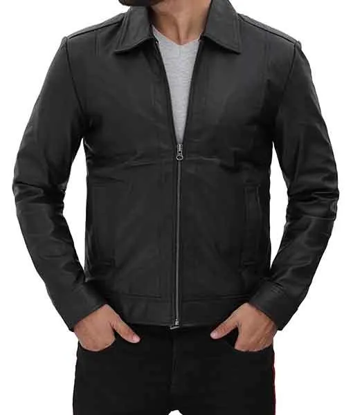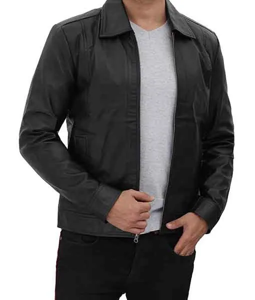 Burr Men’s Black Vintage Shirt Collar Leather Jacket