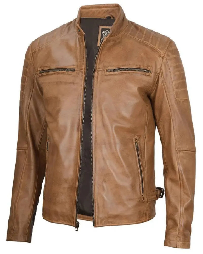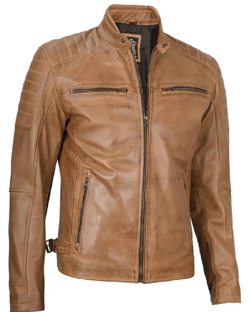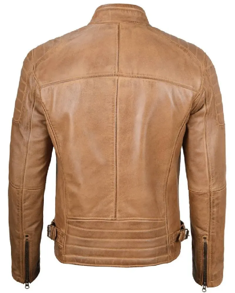 Cafe Racer Camel Brown Leather Jacket for Men