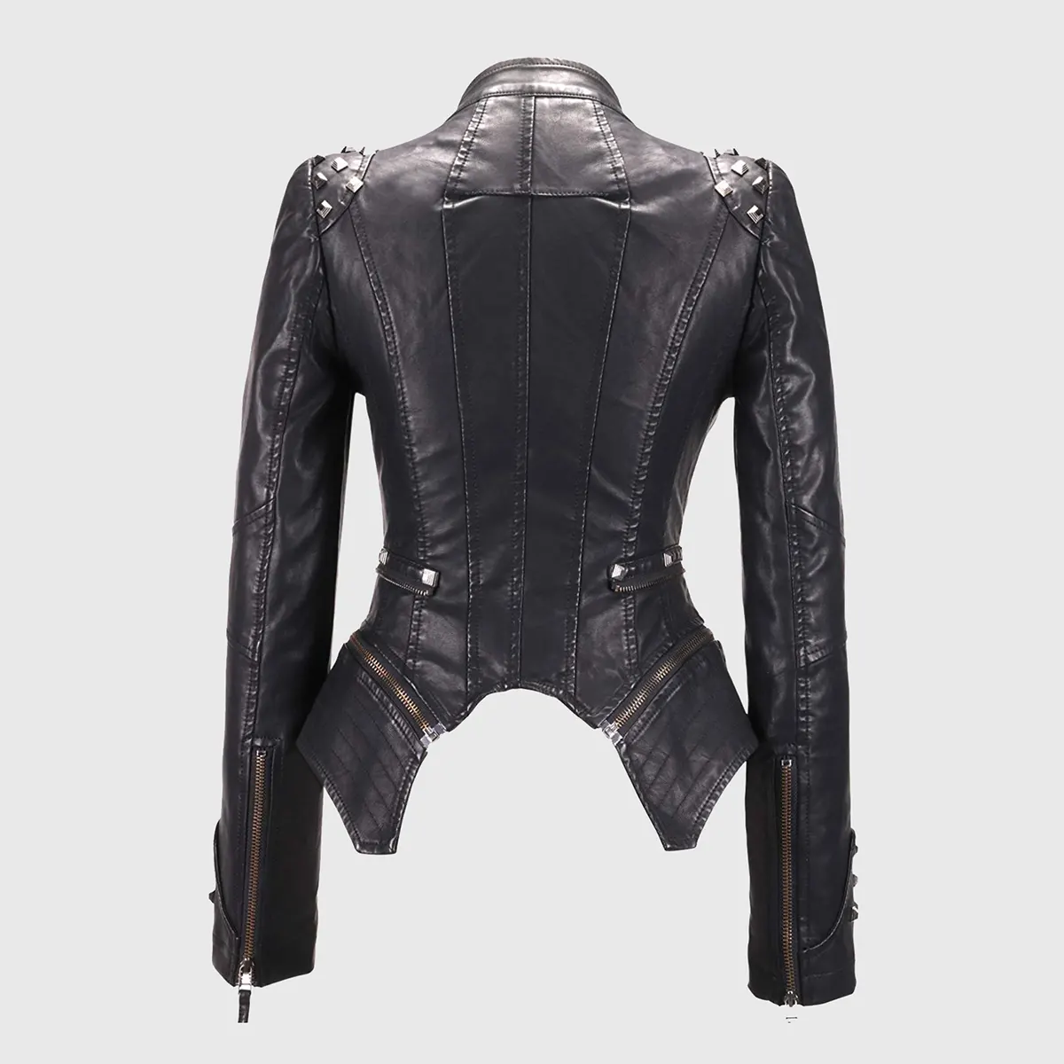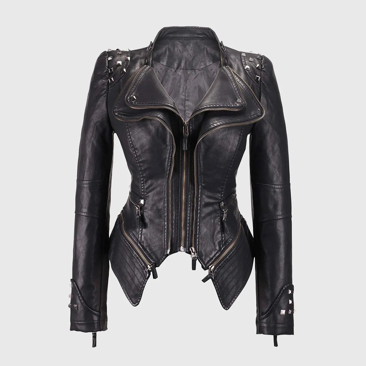 Camila Black Studded Biker Leather Jacket
