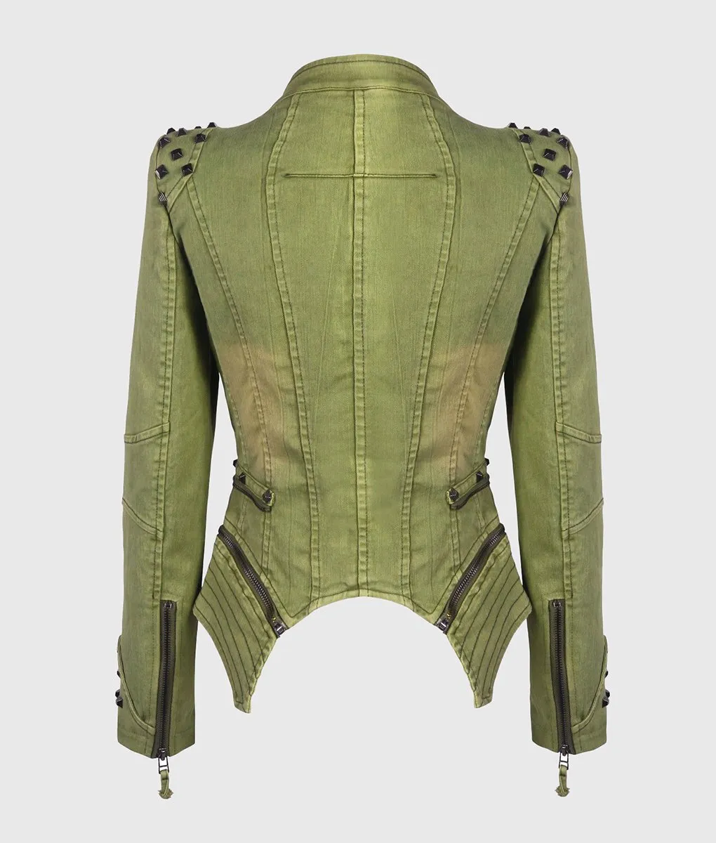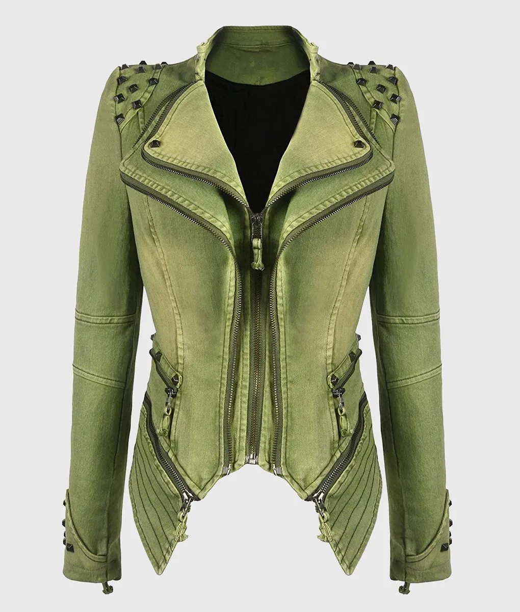 Camila Green Studded Biker Leather Jacket