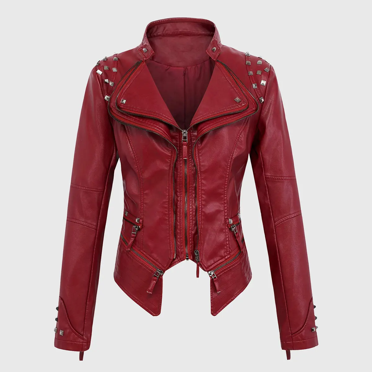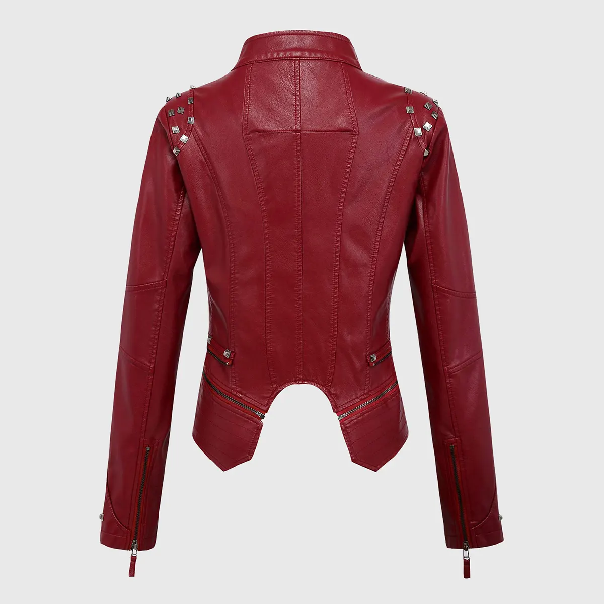 Camila Red Studded Biker Leather Jacket