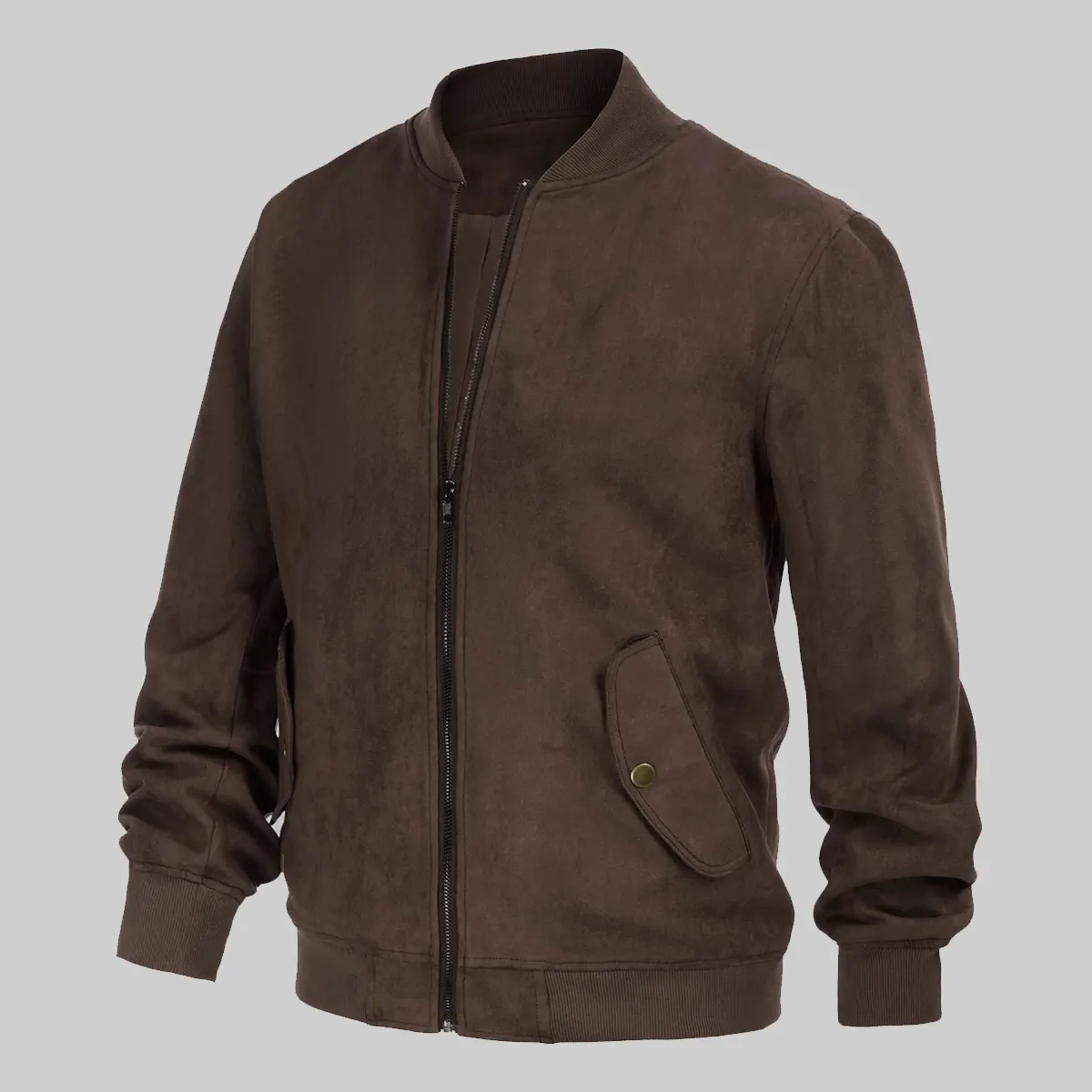 Carter Mens Dark Brown Bomber Suede Leather Jacket
