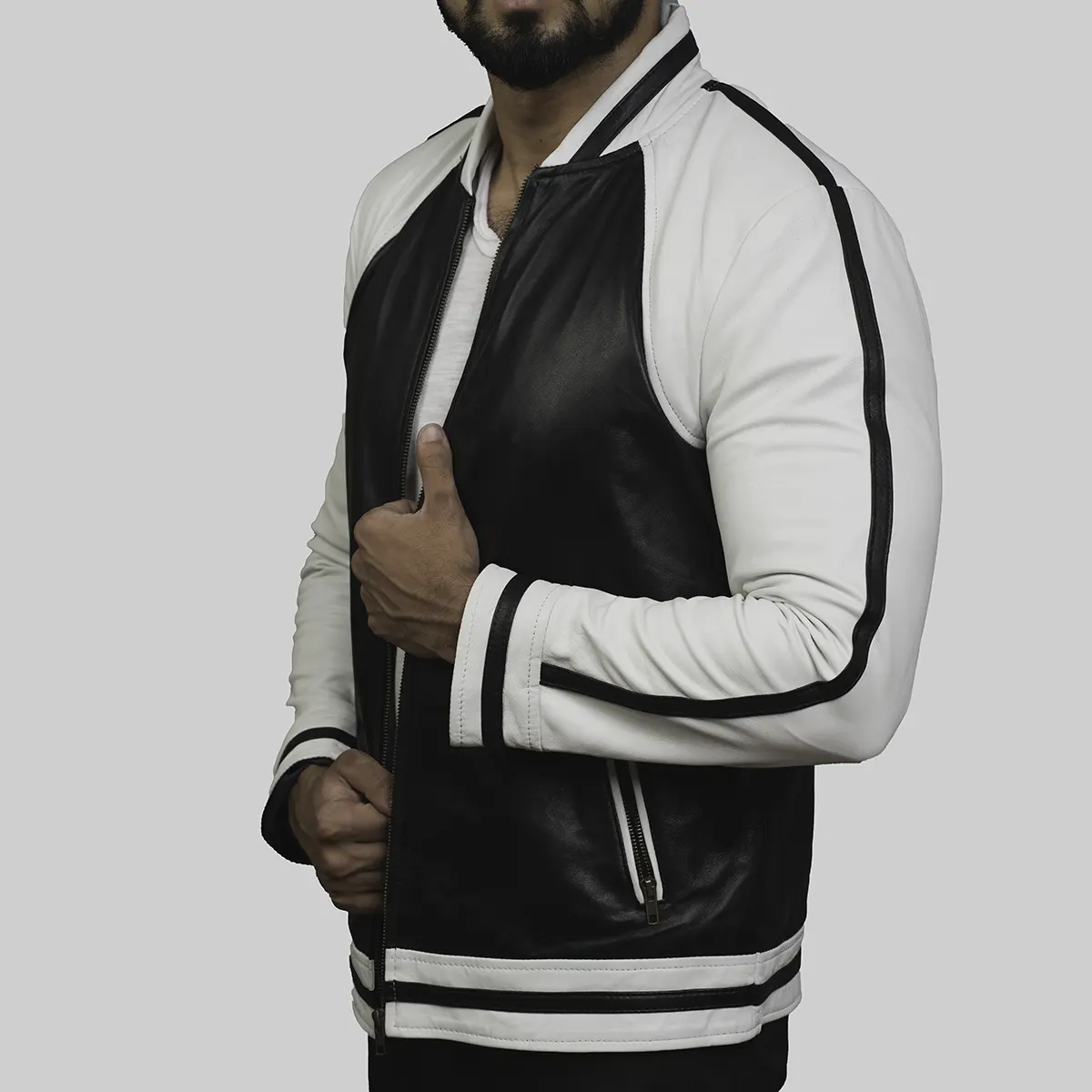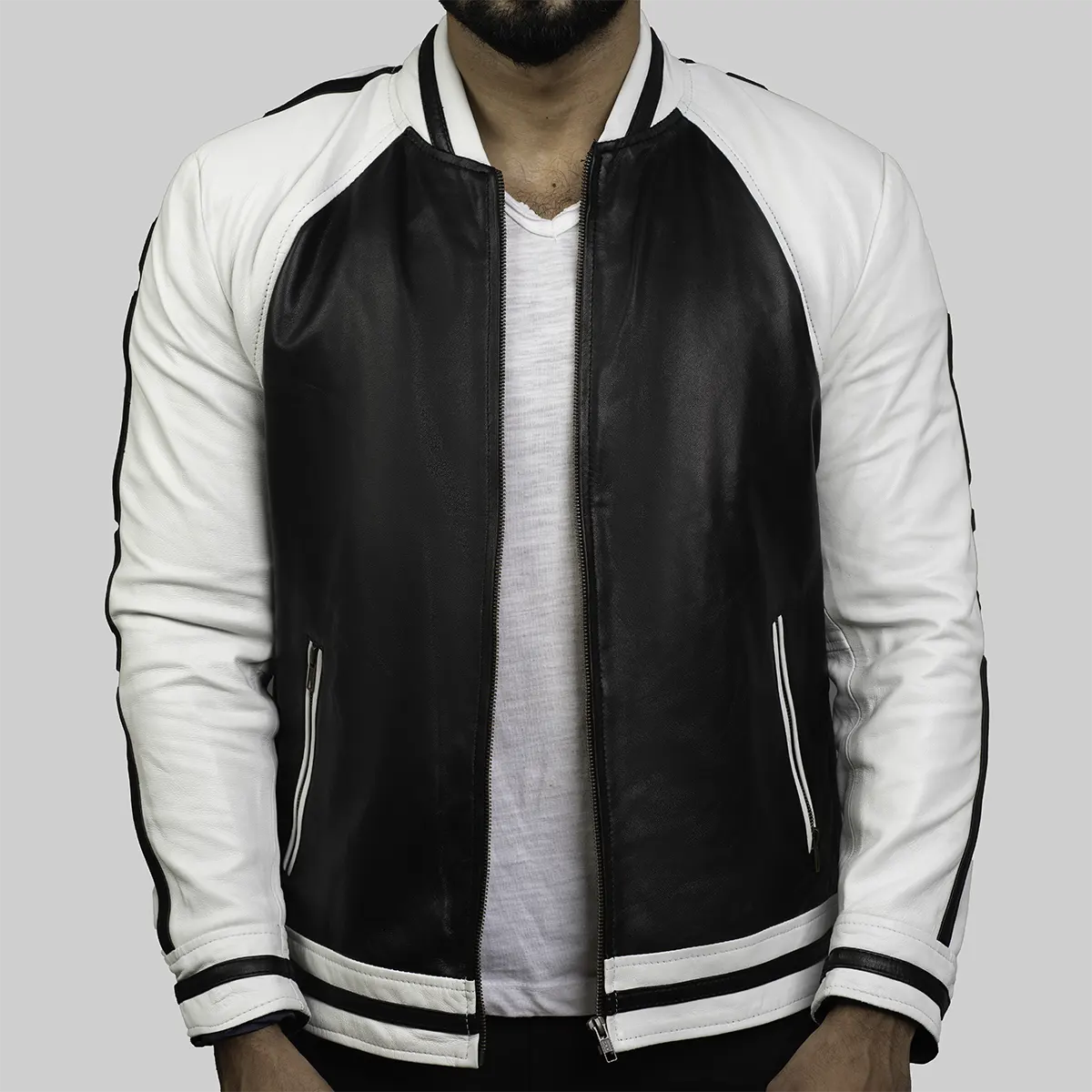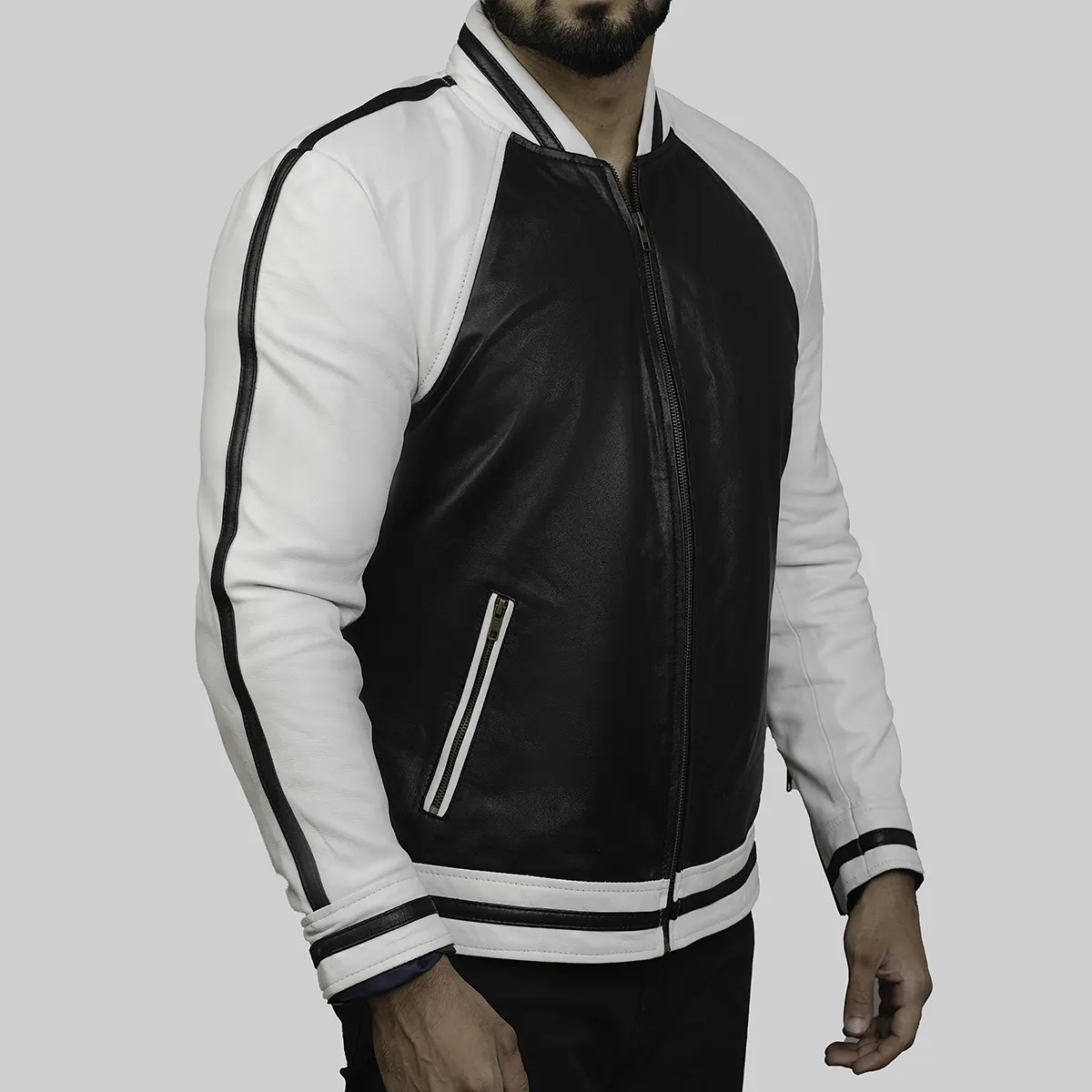 Charles Men’s Classic Black Stripped Bomber Style Jacket