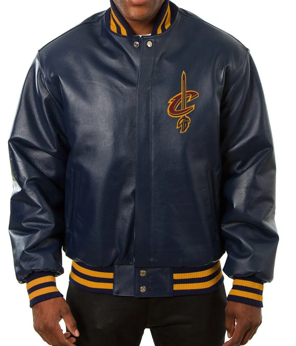 Cleveland Cavaliers Navy Blue Leather Varsity Jacket