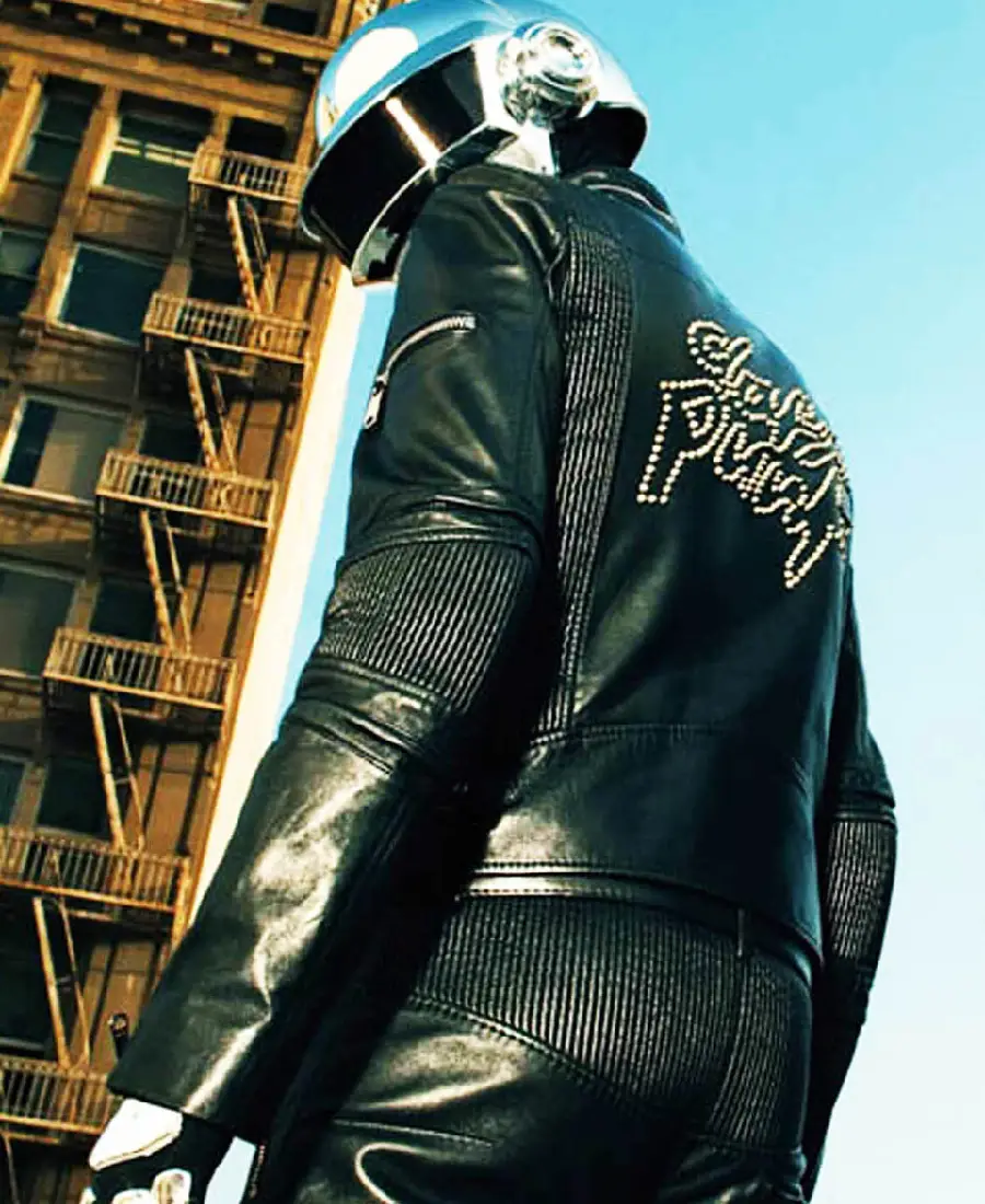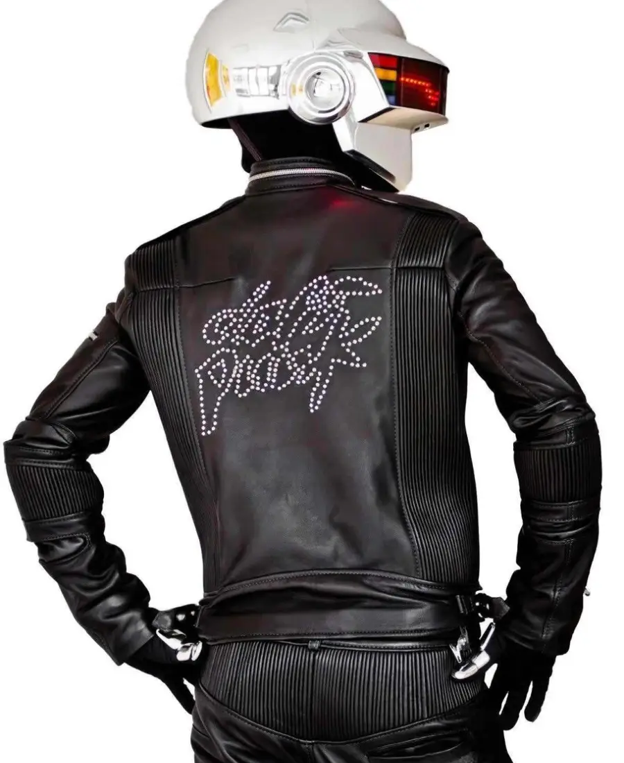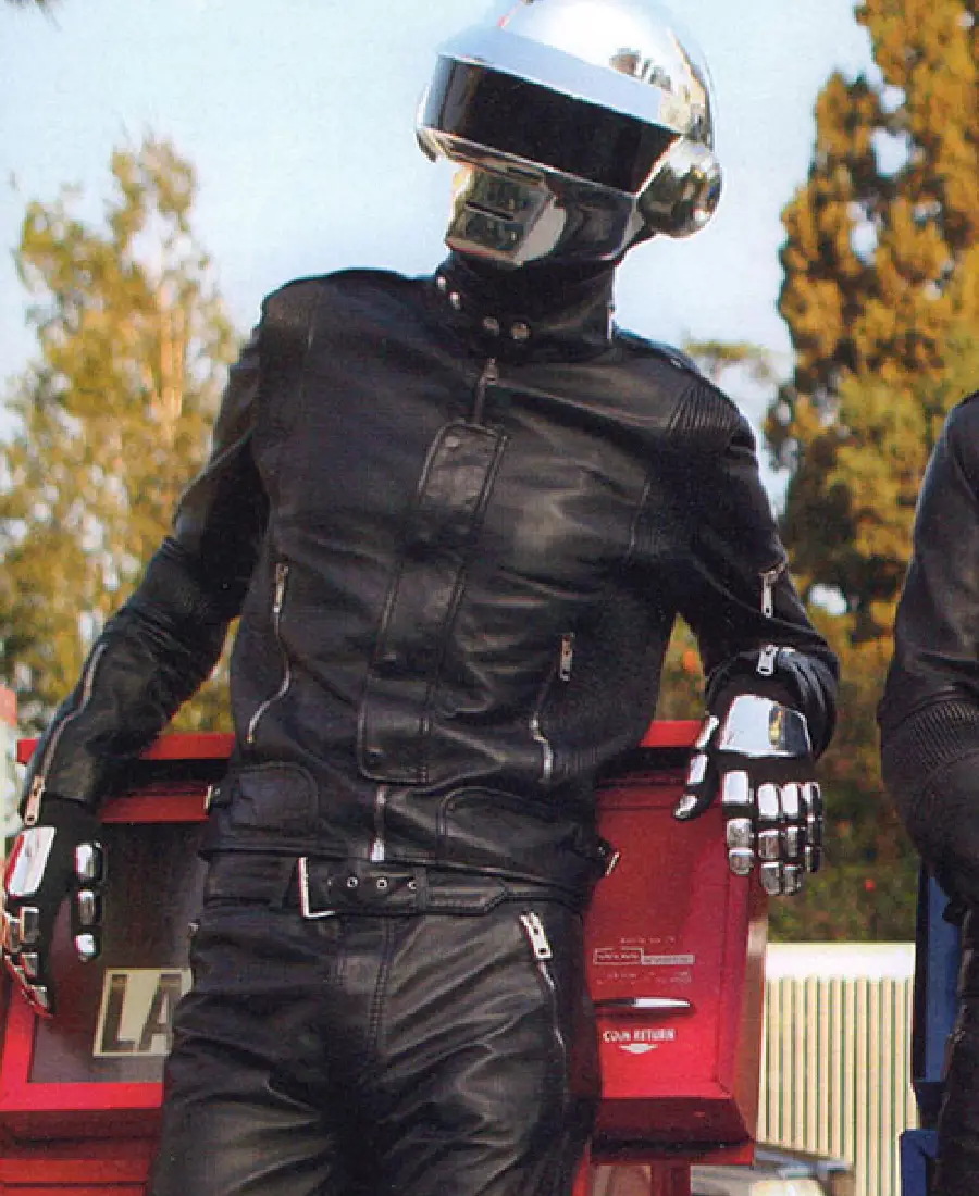 Inspired by the unforgettable look from daft punk electroma this leather jacket brings cinematic style into real life. Anyone who has seen the electroma daft punk full movie will instantly recognize the bold design that made it stand out on screen. Made from real leather this jacket has a strong and durable feel that only gets better with time. The soft viscose lining on the inside keeps it comfortable whether you are out with friends or reliving memories from a classic daft punk concert. It carries the same confident attitude fans remember from the legendary daft punk tour days. The structured erect collar gives it a sharp modern look while the zipped closure keeps the fit clean and secure. With full length sleeves and zipped cuffs the design stays true to the iconic style seen during the era of daft punk alive. Practical details like two side pockets add everyday convenience without taking away from its bold appearance. Finished in deep black this jacket makes a strong statement and pairs well with casual and street style outfits alike.