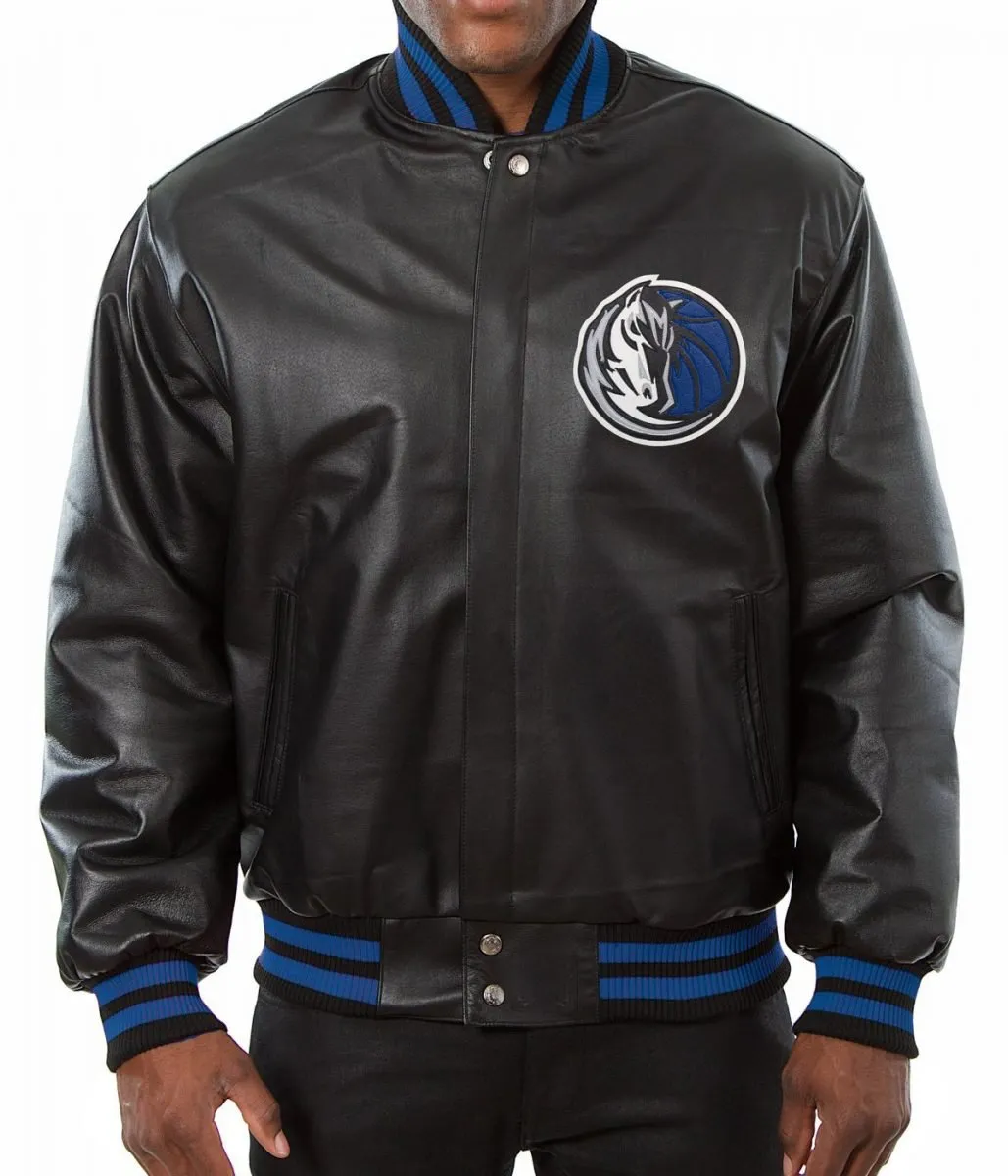 Dallas Mavericks Black Leather Varsity Jacket