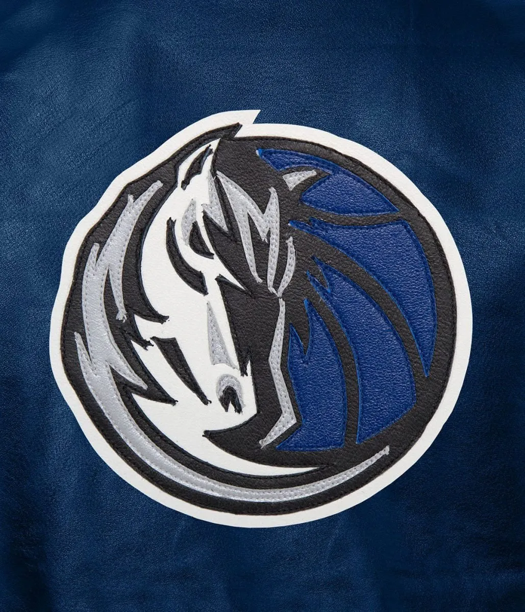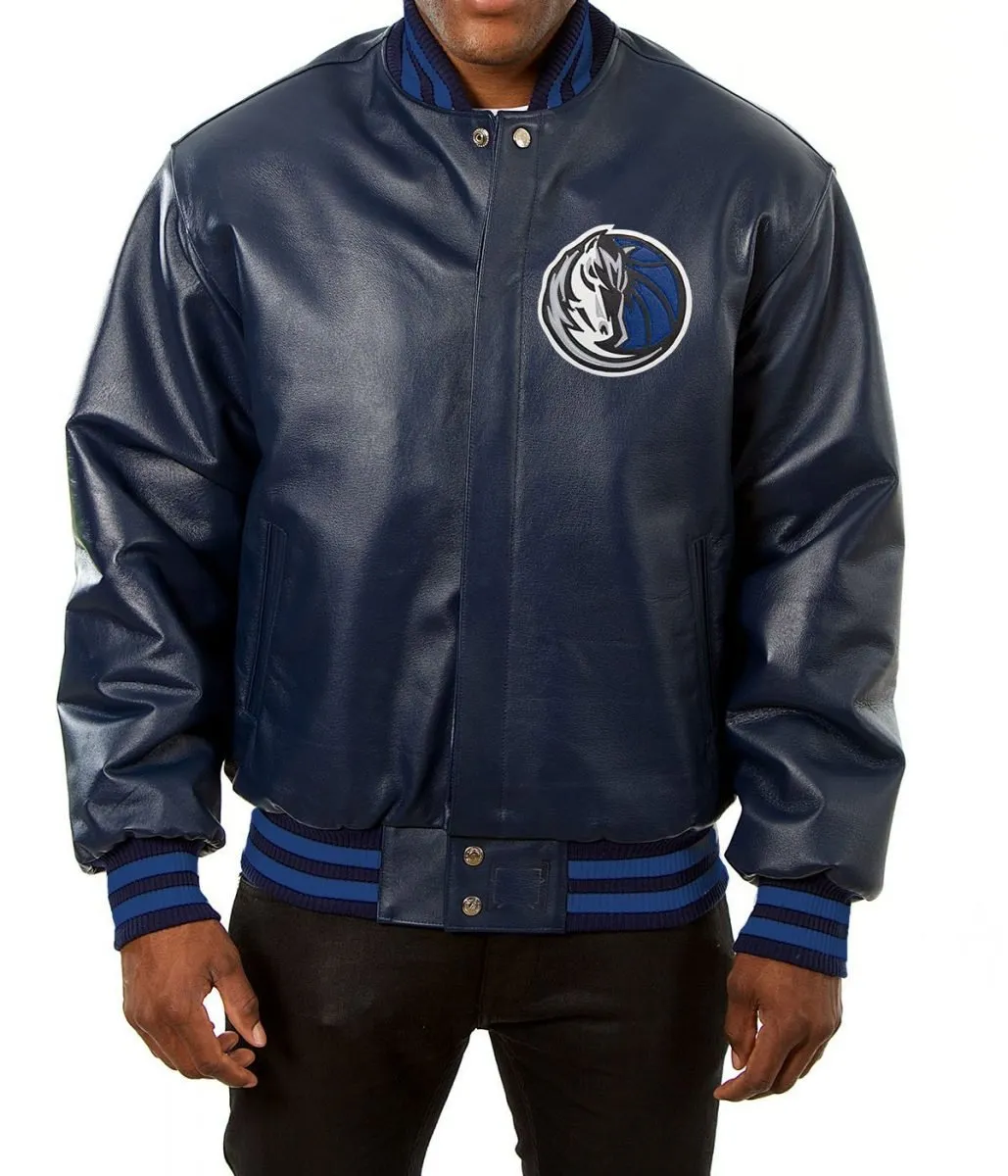 Dallas Mavericks Navy Blue Leather Varsity Jacket