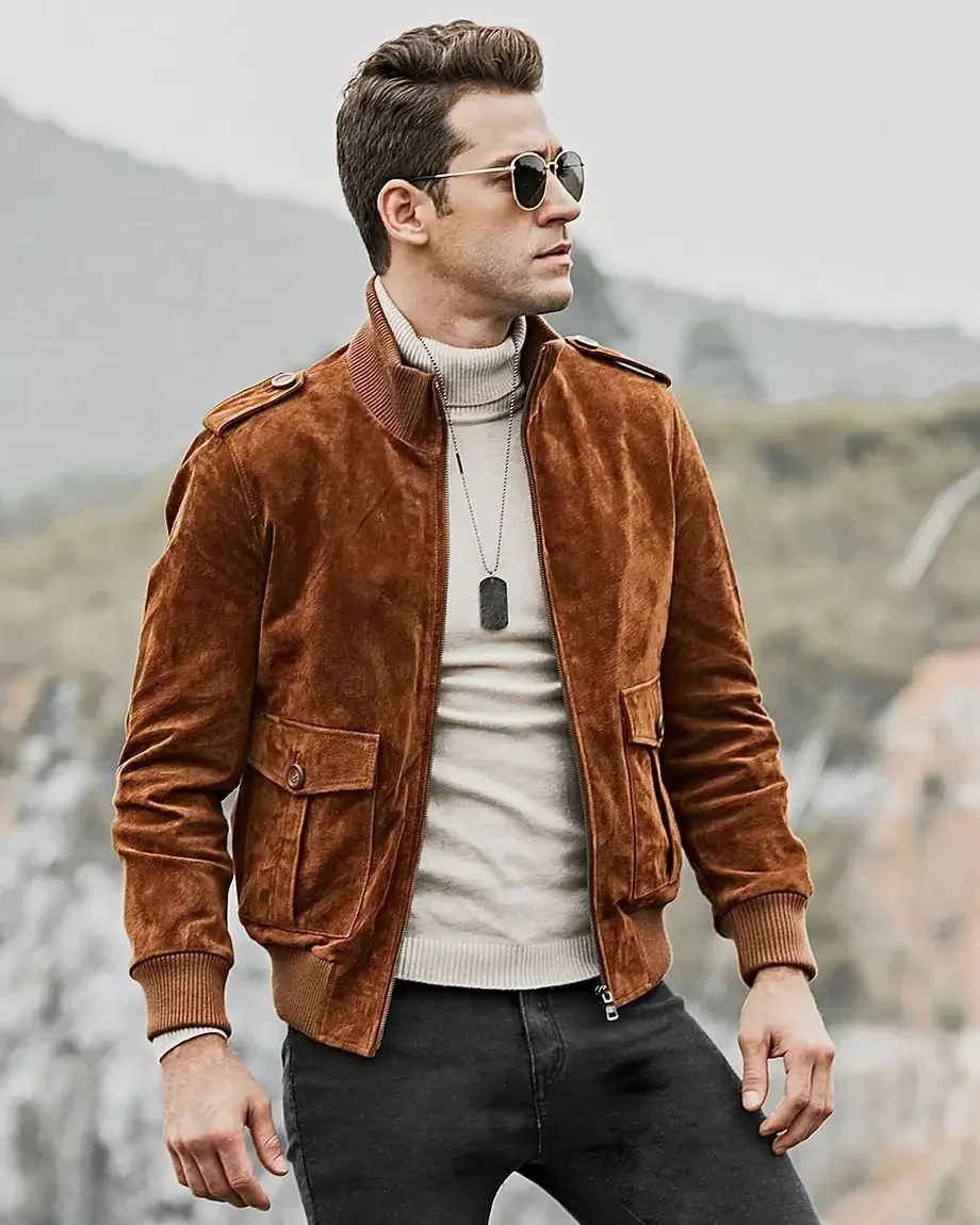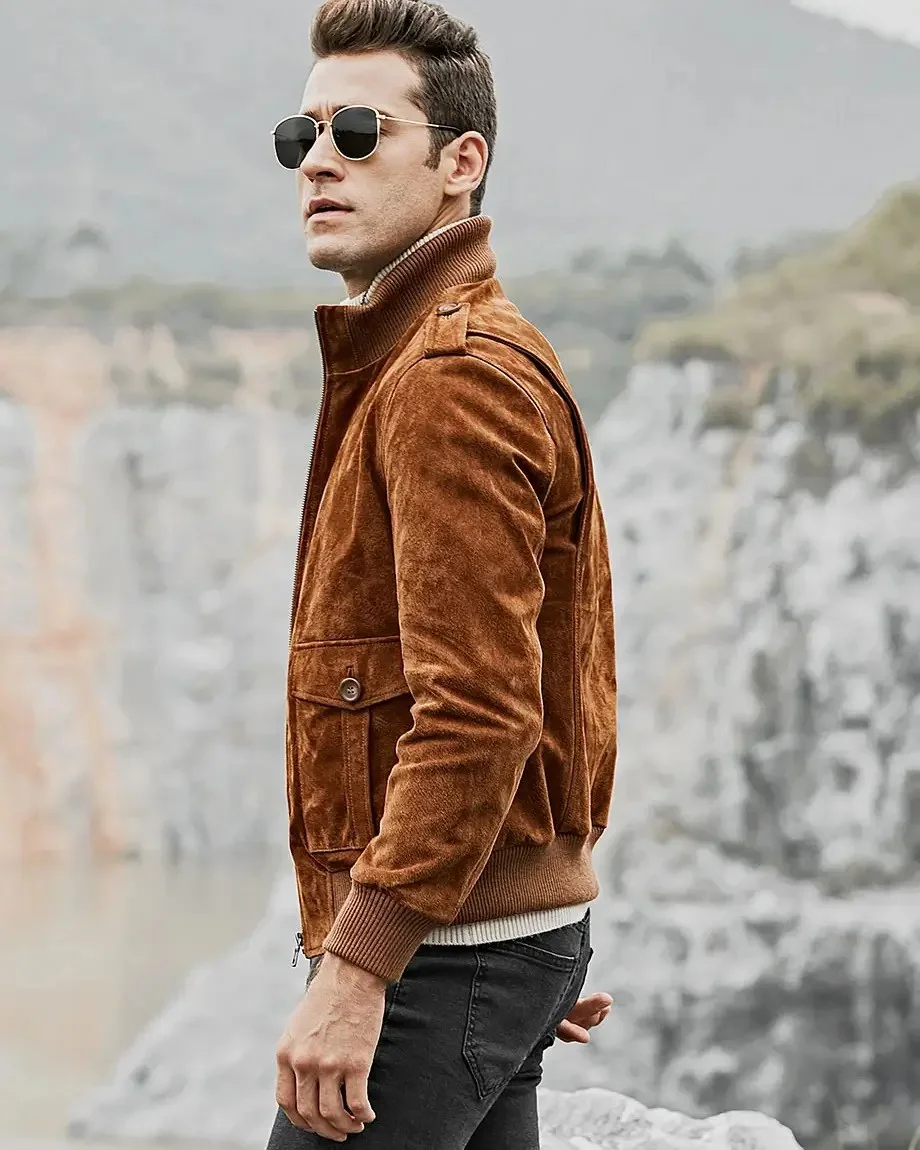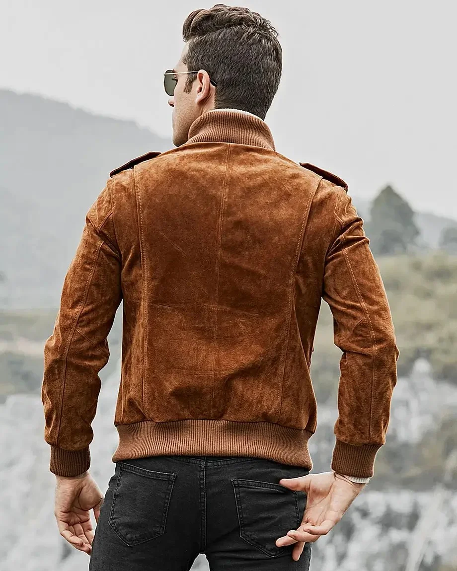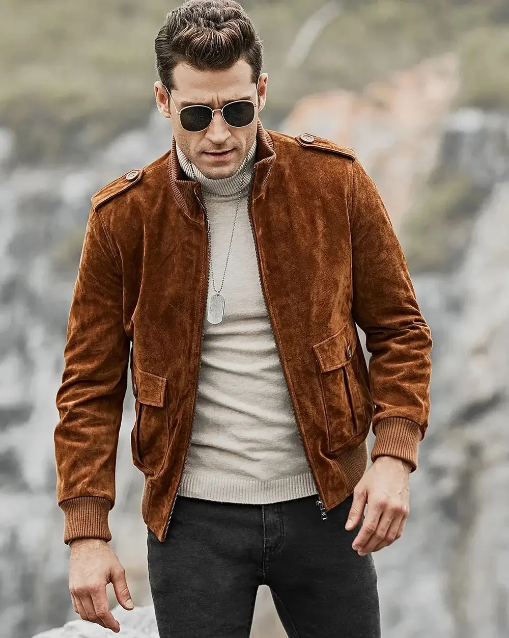 Be the first to review “Dallas Rib Knitted Collar Bomber Jacket | Brown Suede Leather Jacket” Cancel reply