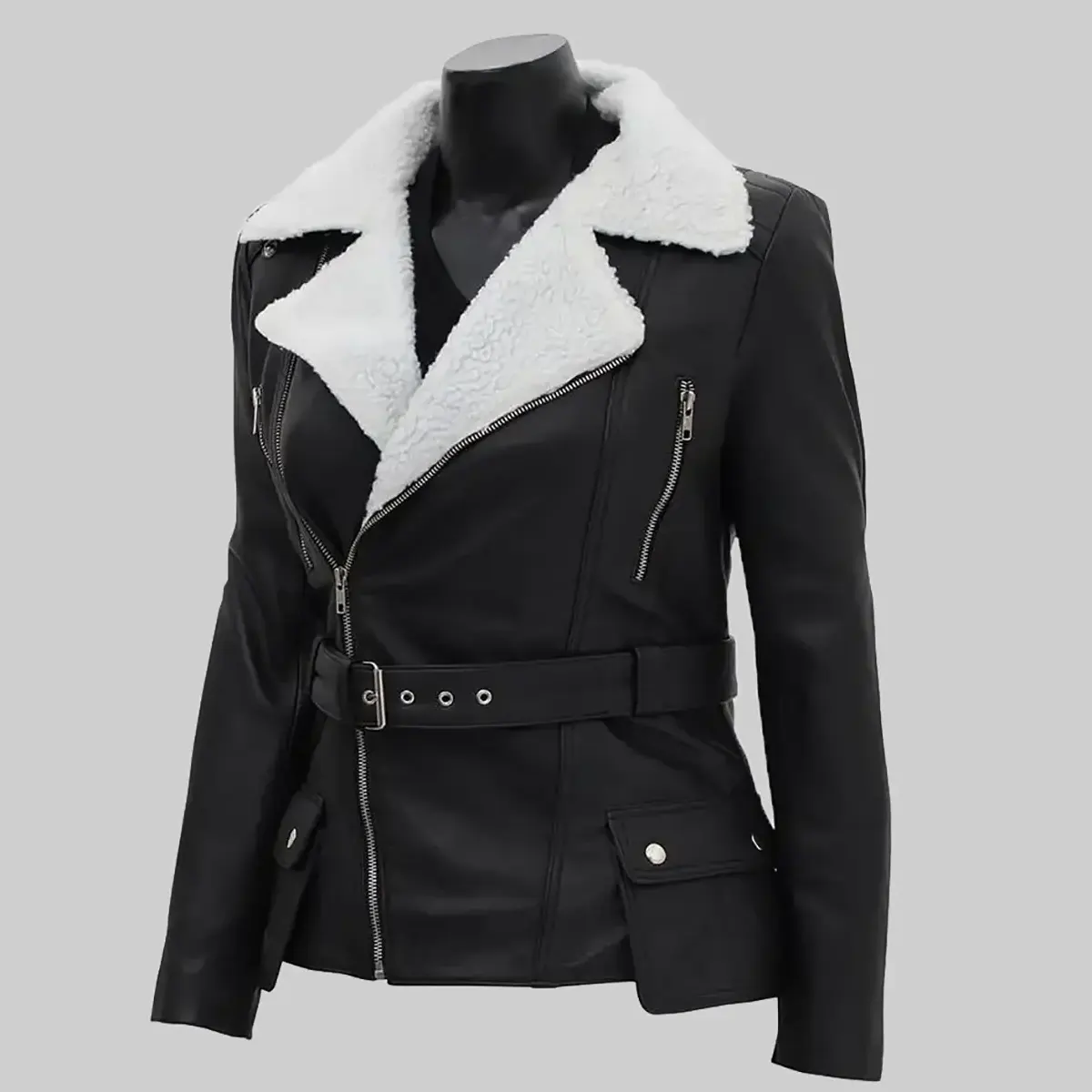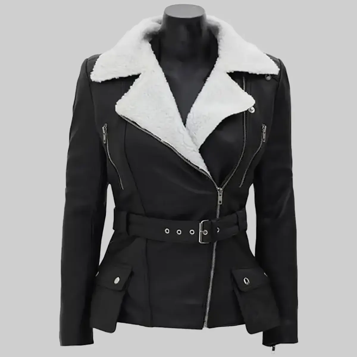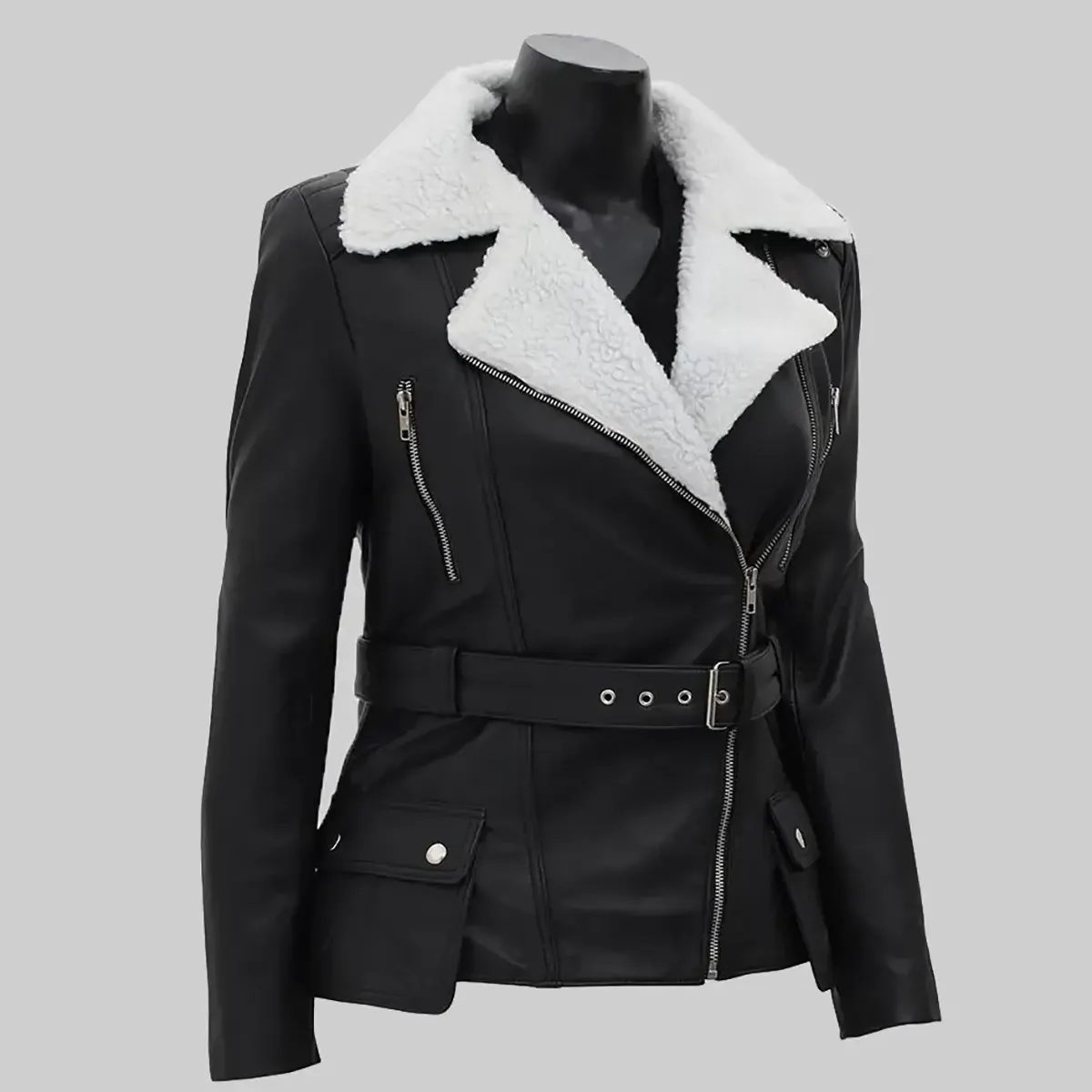 Daniels Women’s Black Biker Shearling Leather Jacket