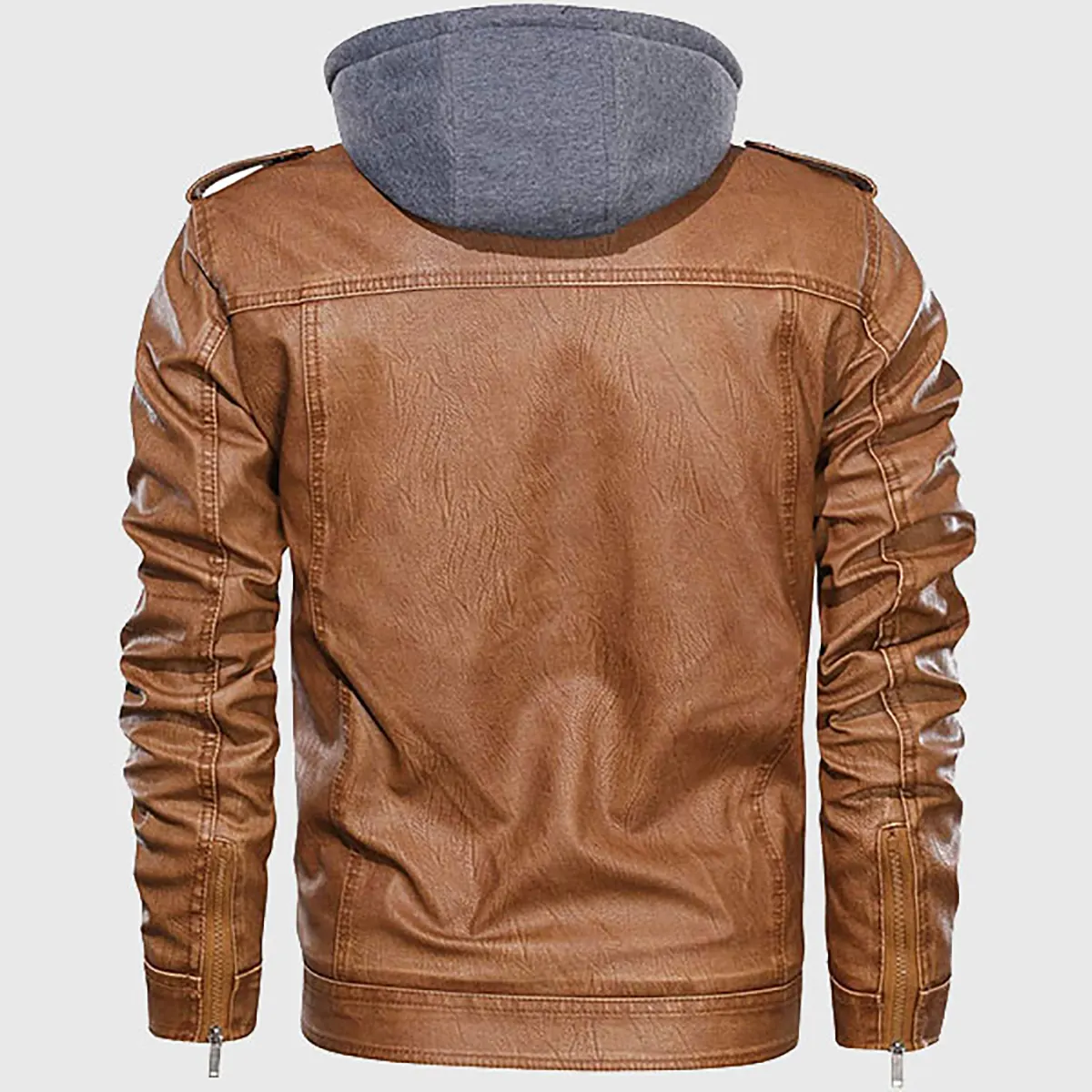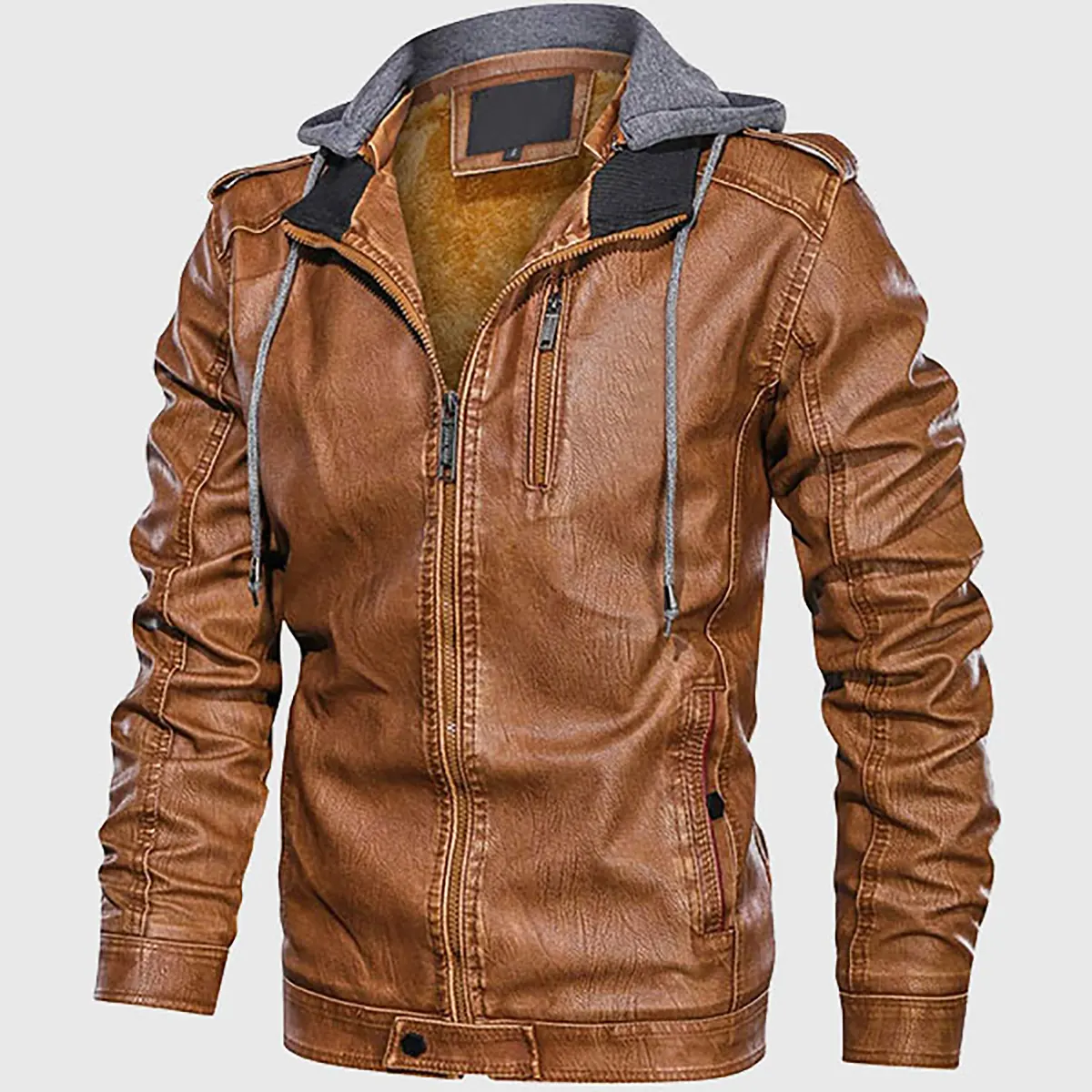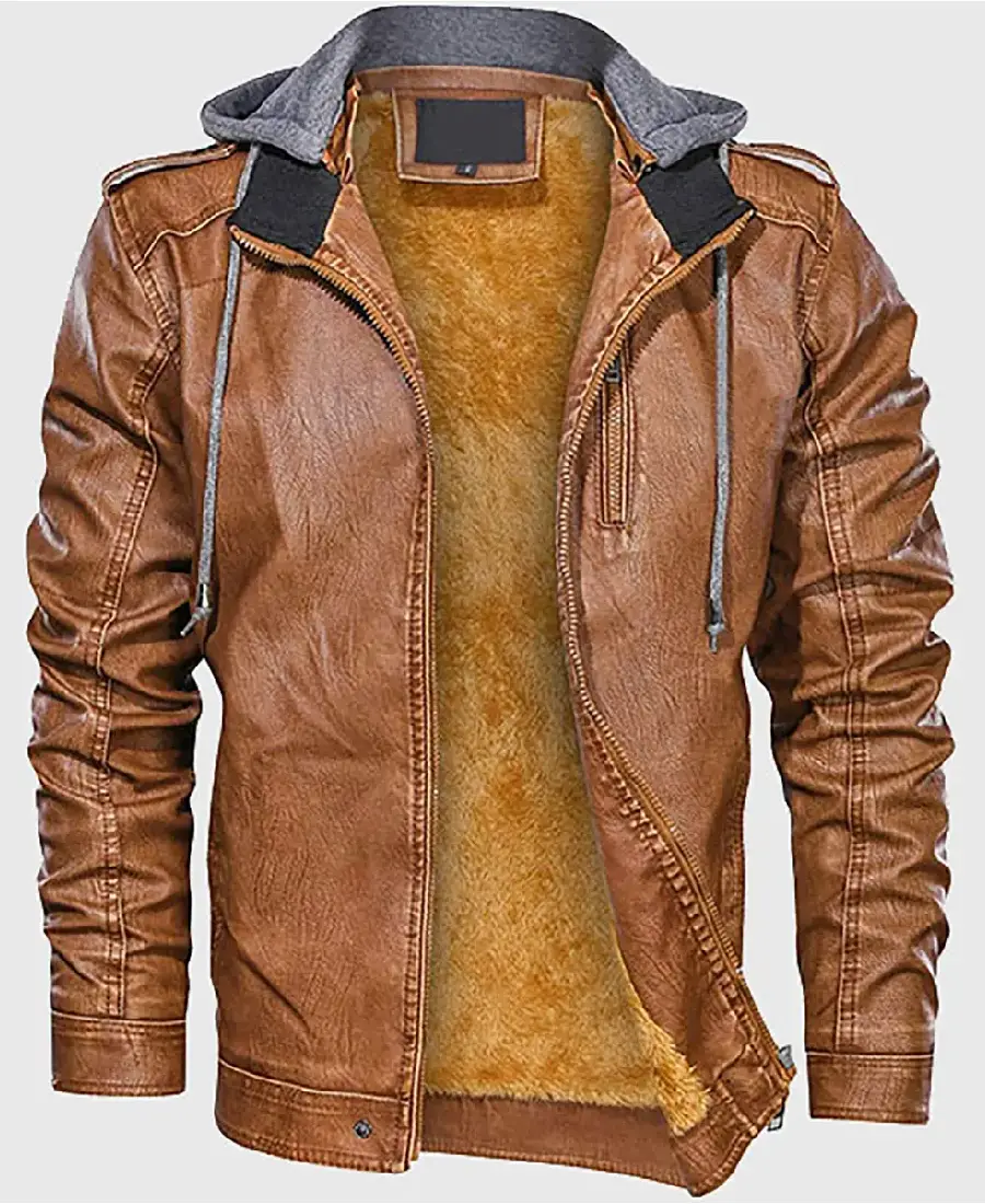 David Men’s Distressed Brown Hooded Leather Jacket