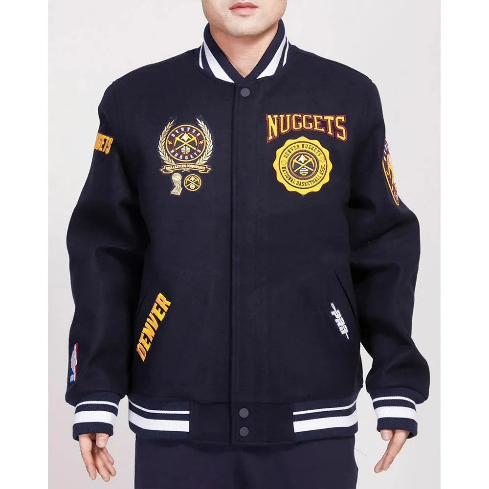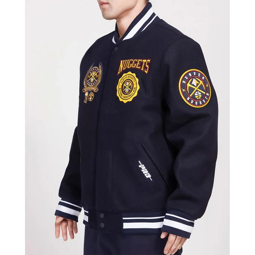 Denver Nuggets Crest Emblem Navy Varsity Wool Jacket
