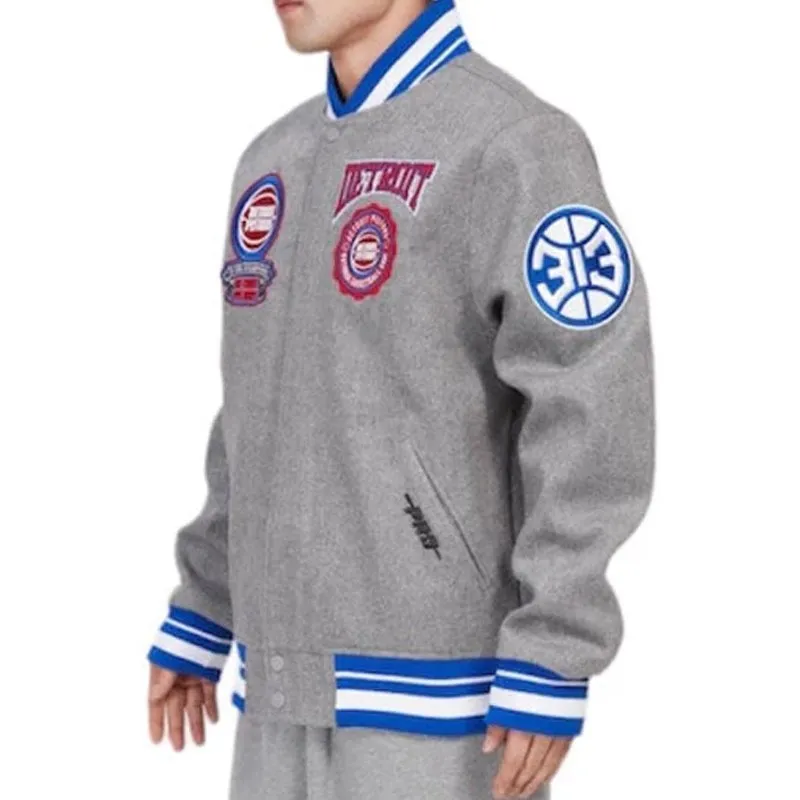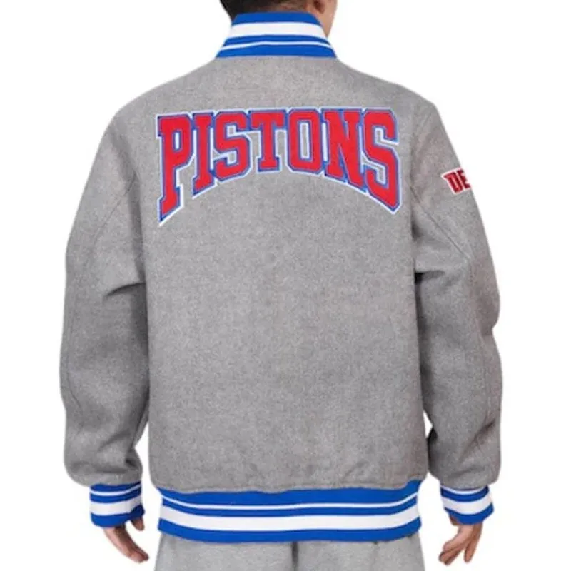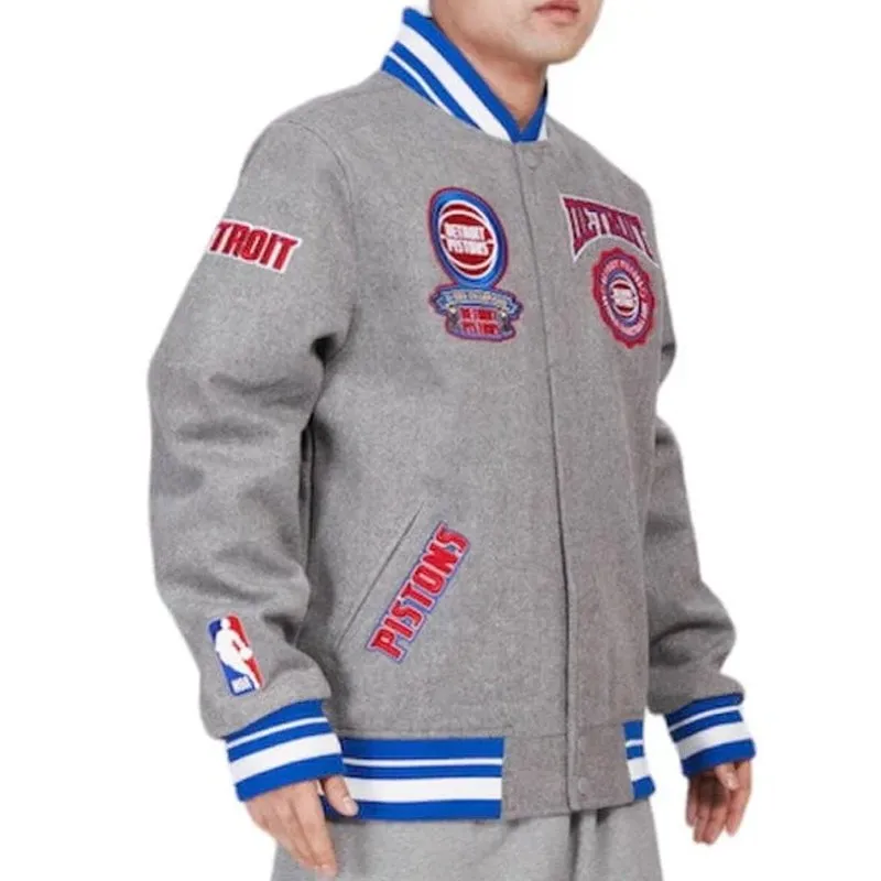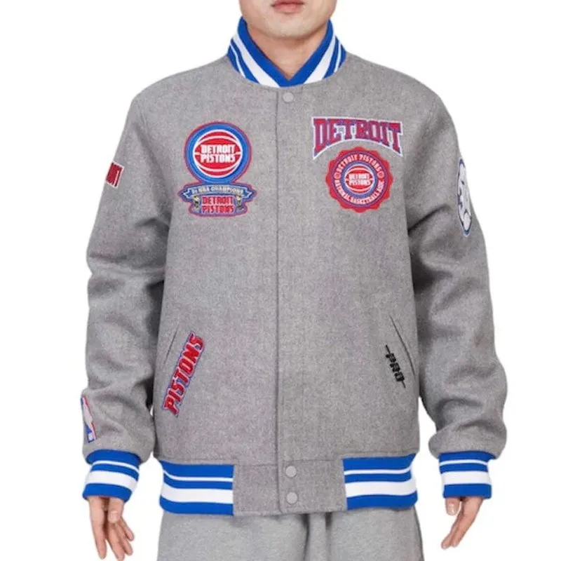Detroit Pistons Crest Emblem Grey Varsity Jacket