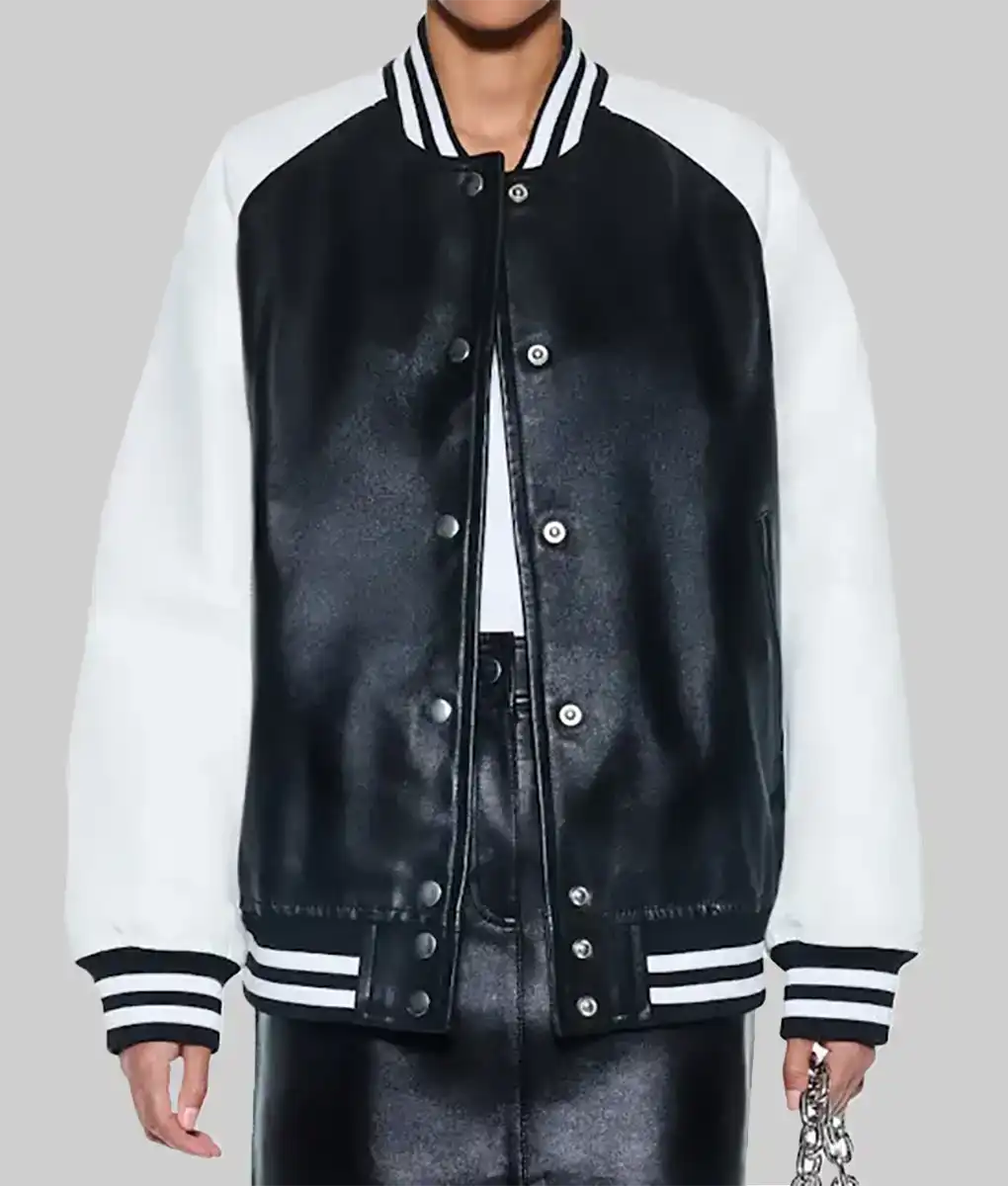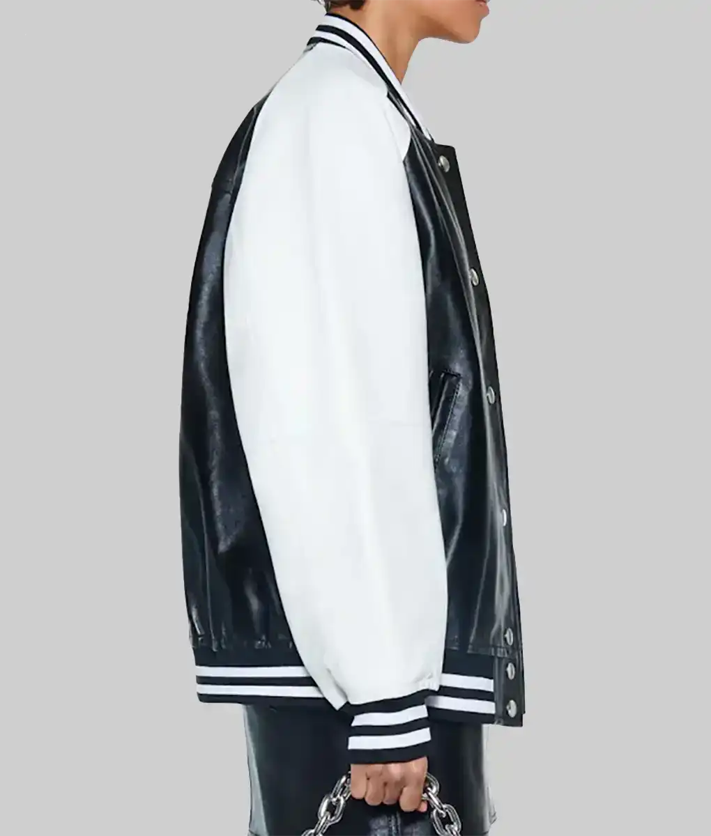 Shop The Diana Women’s Black and White Leather Varsity Jacket