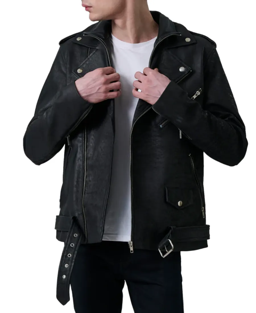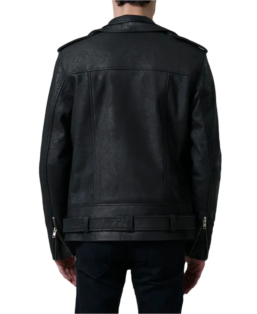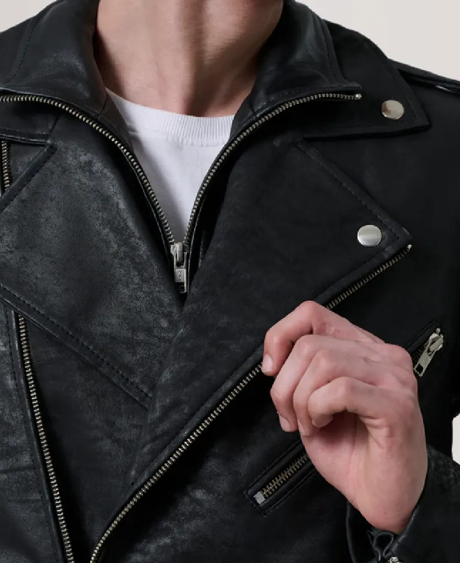 Distressed Black Leather Rider Jacket