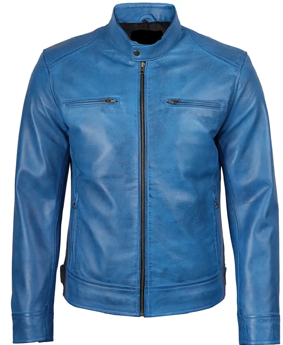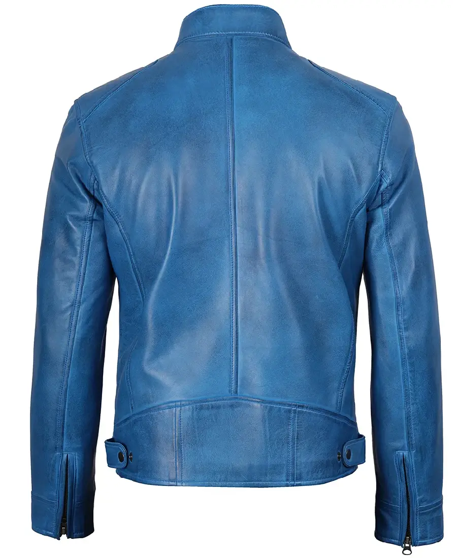 Shop The Dodge Blue Cafe Racer Leather Jacket
