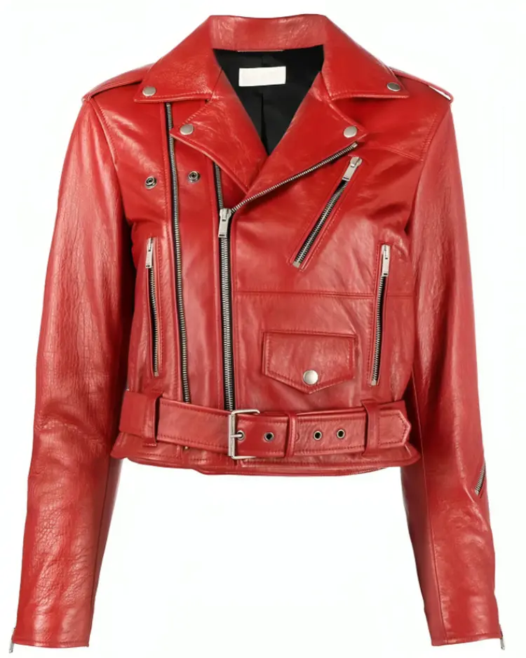 Be the first to review “E! News Daryn Carp Red Leather Moto Jacket” Cancel reply