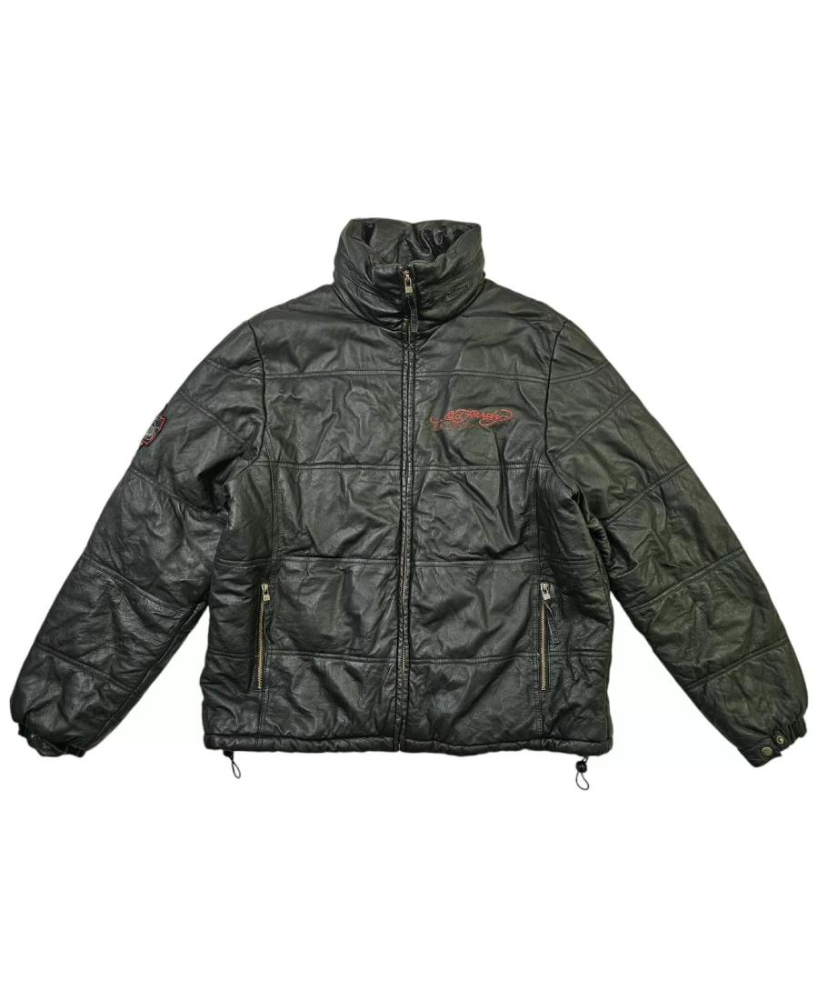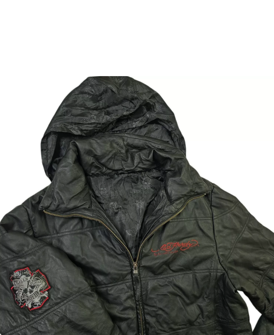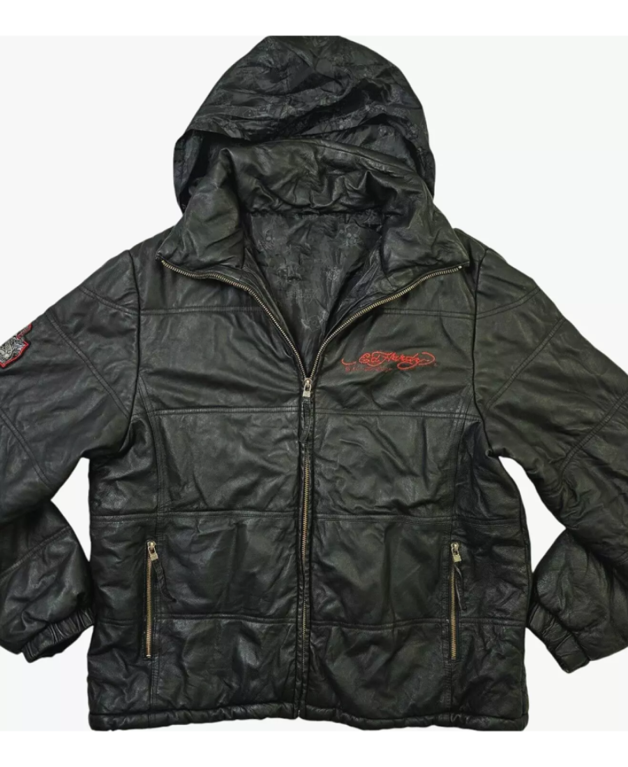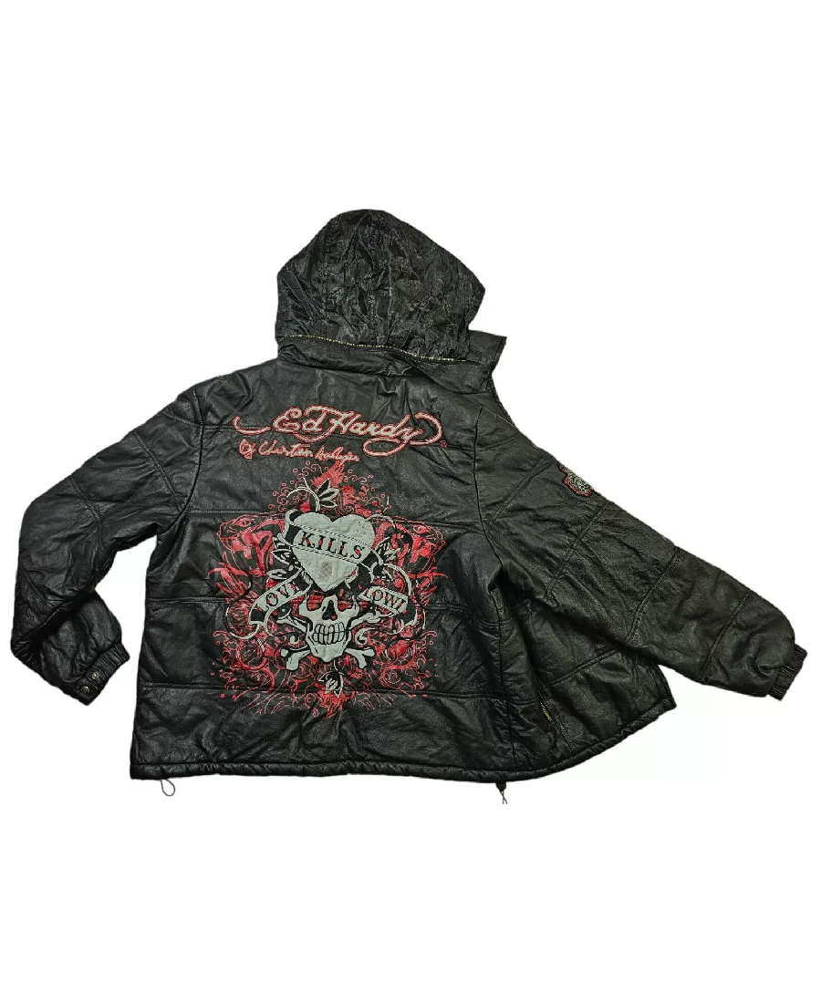 ED Hardy Love Kills Slowly Hood Leather Jacket