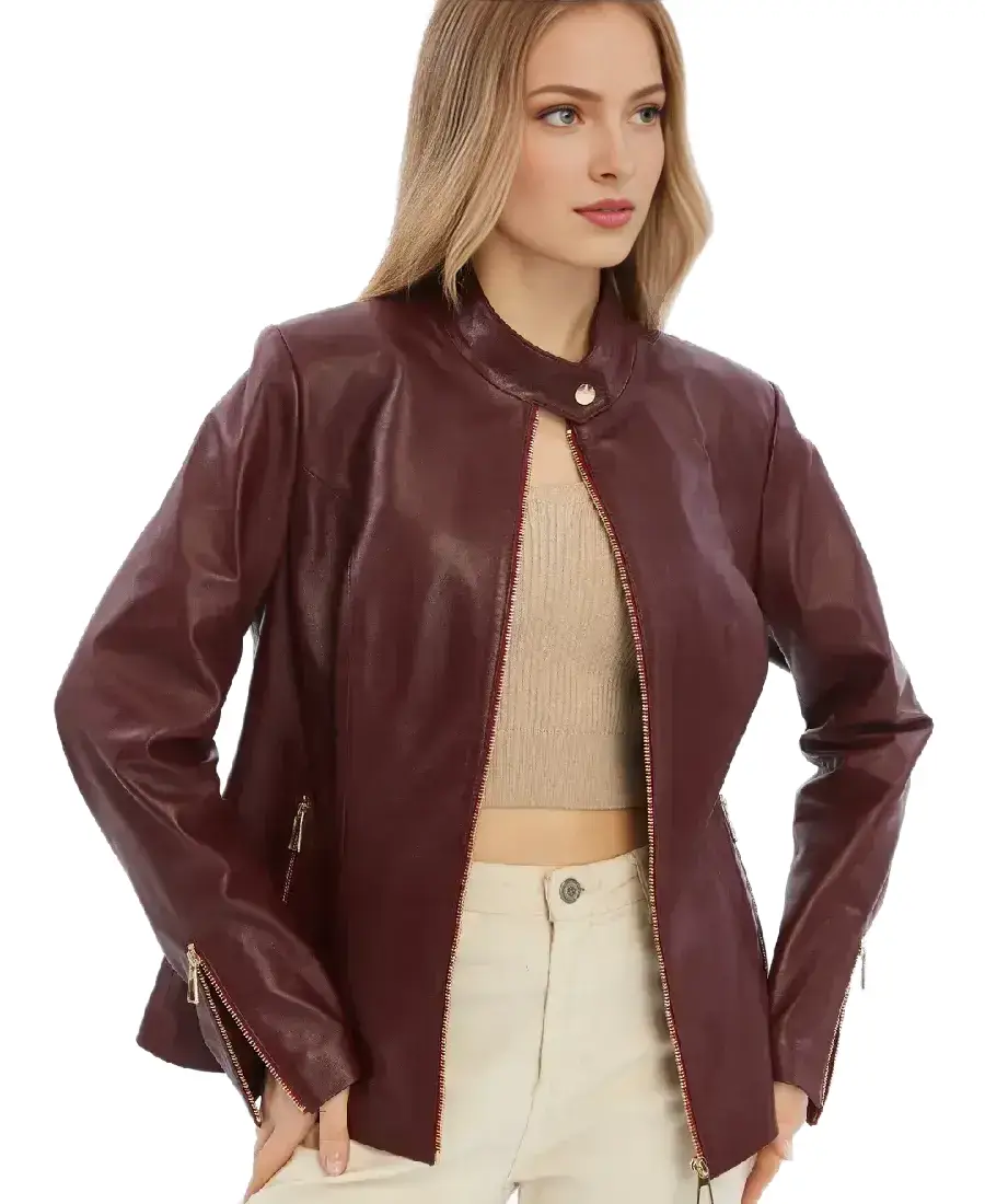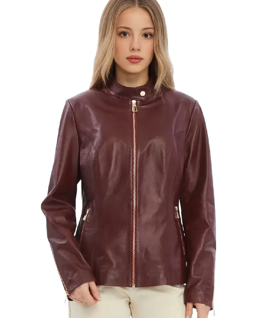 Elspeth Women Burgundy Leather Jacket
