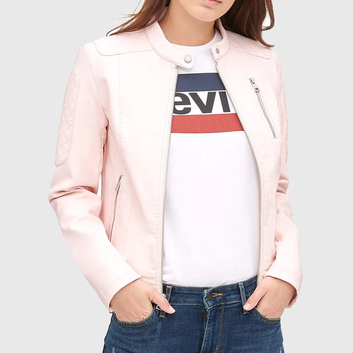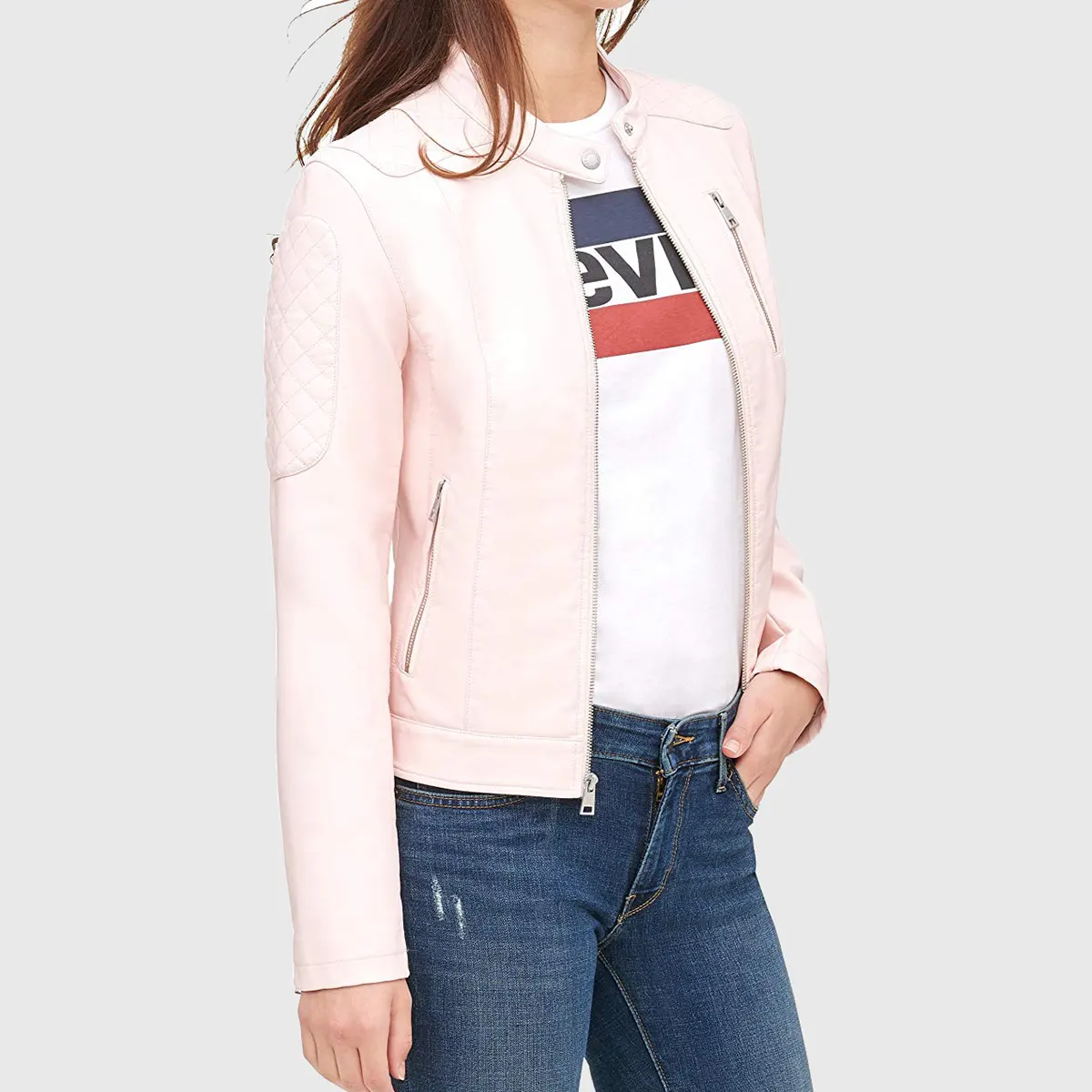 Shop Emma Pink Quilted Moto Cafe Racer Biker Jacket