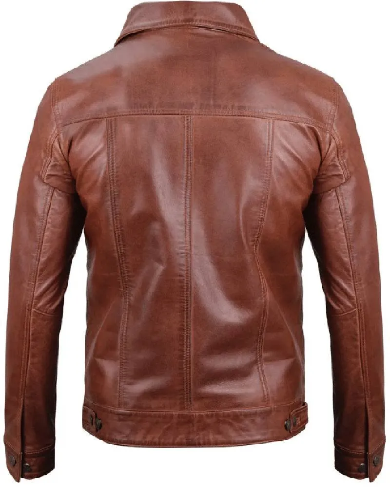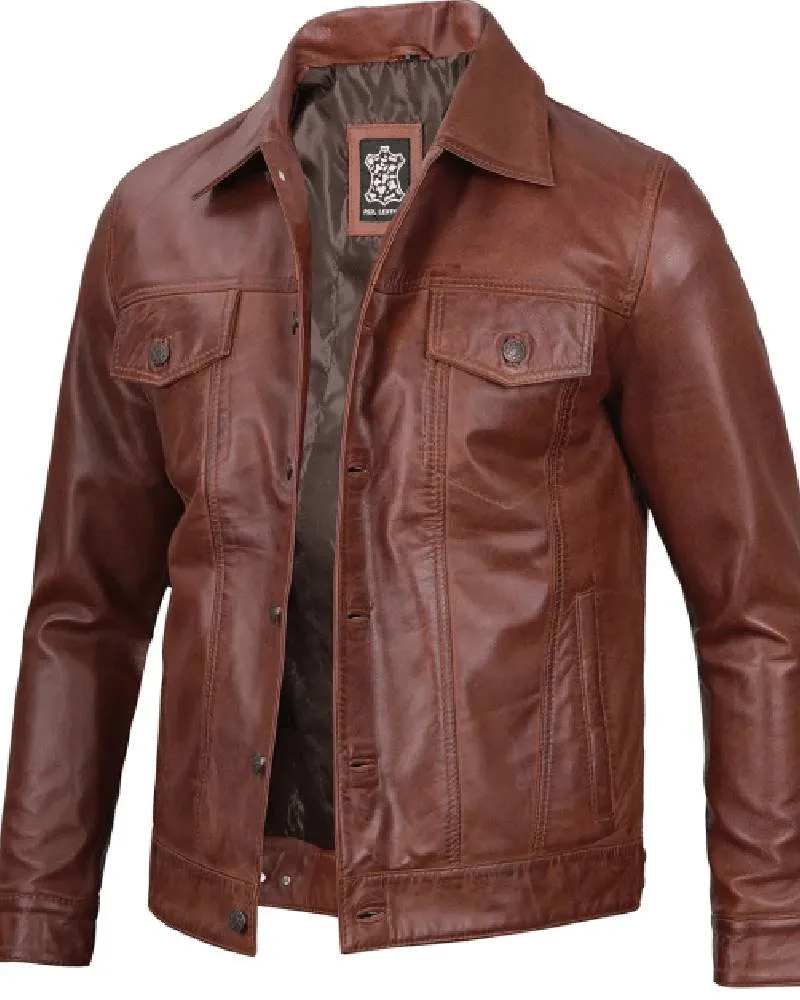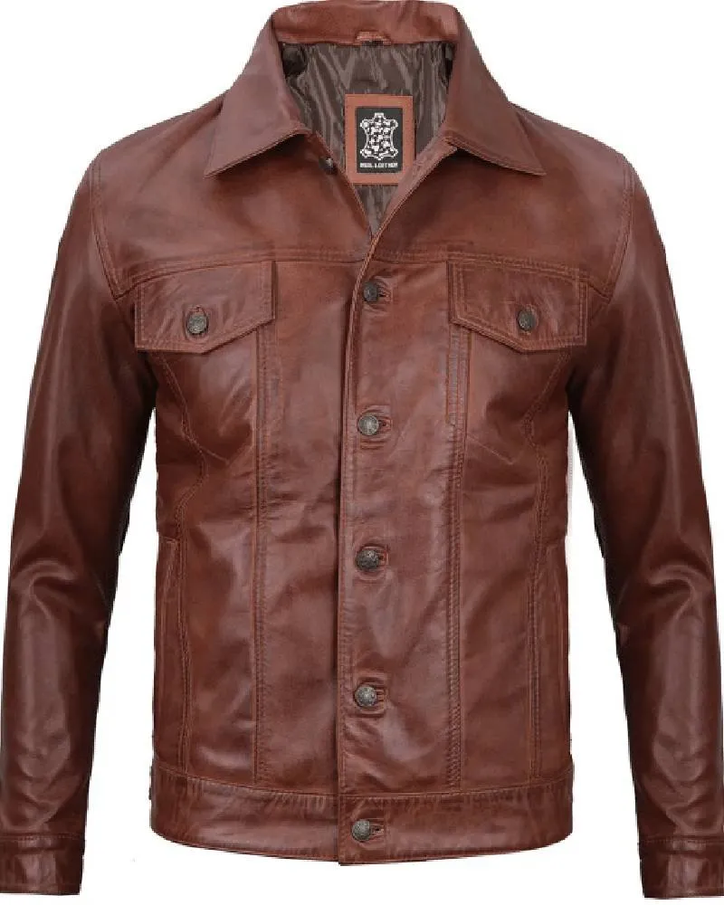 Fernando Men’s Harrington Brown Leather Trucker Jacket