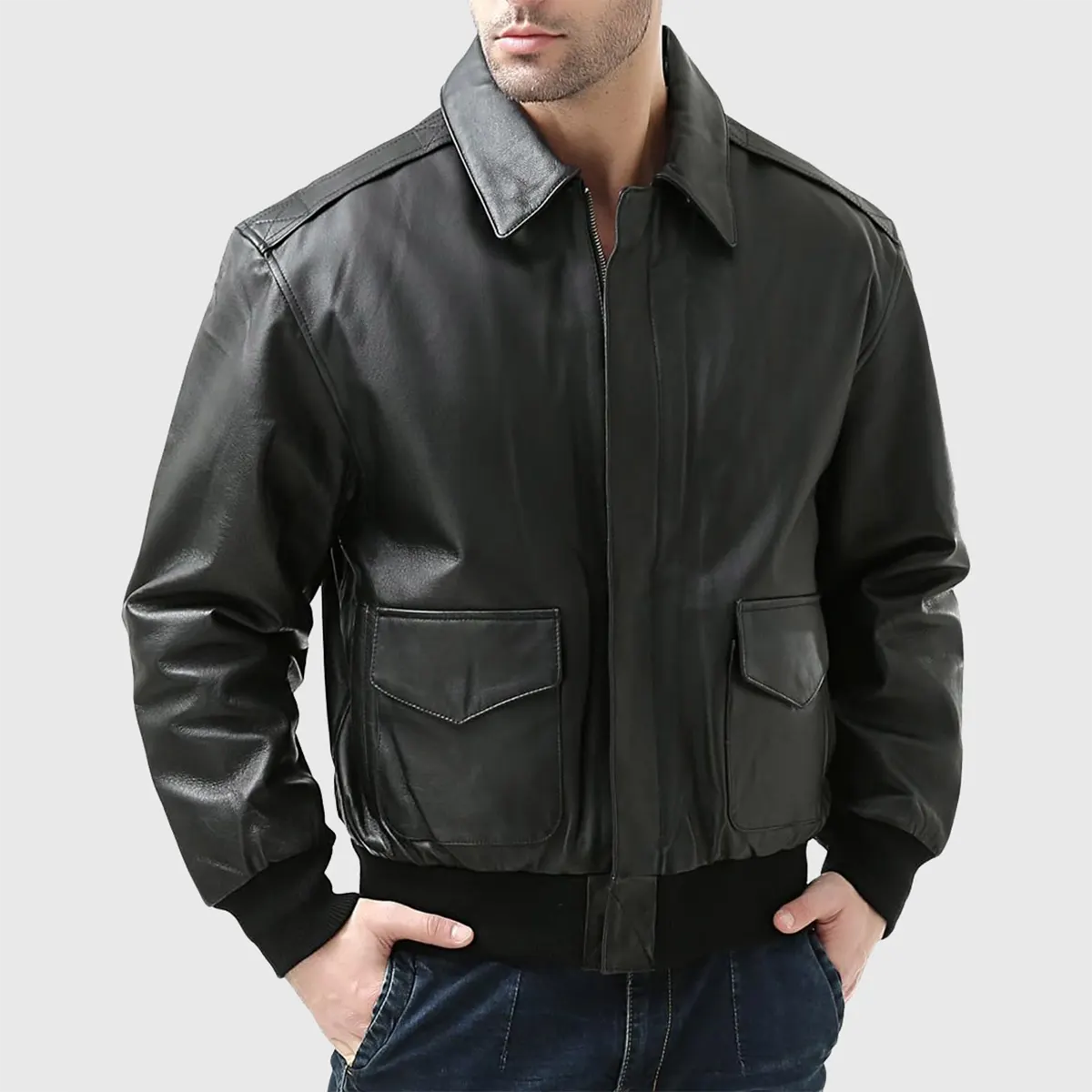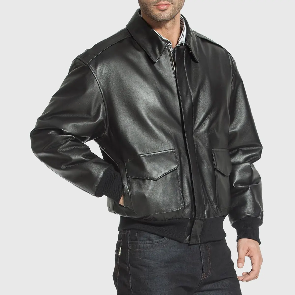 Flight Black A-2 Bomber Aviator Leather Jacket