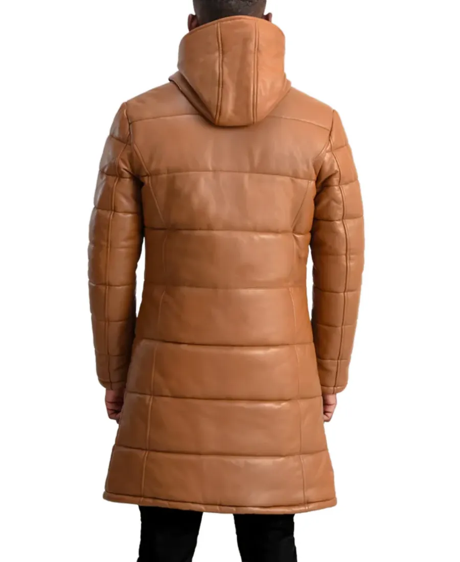 Floyd Brown Hooded Leather Puffer Coat