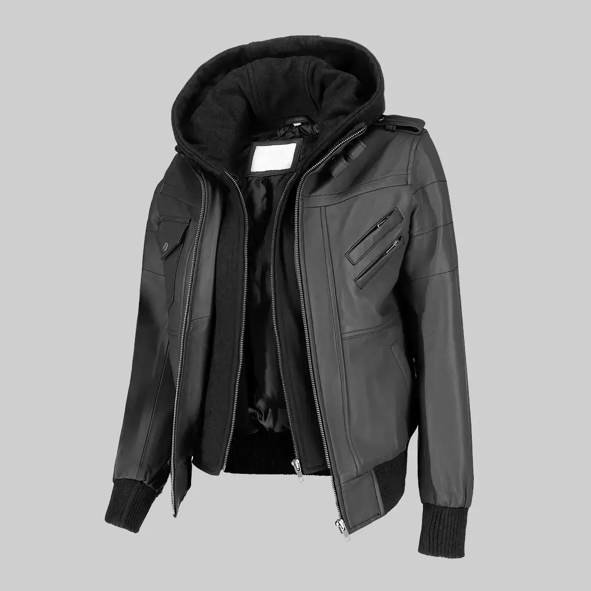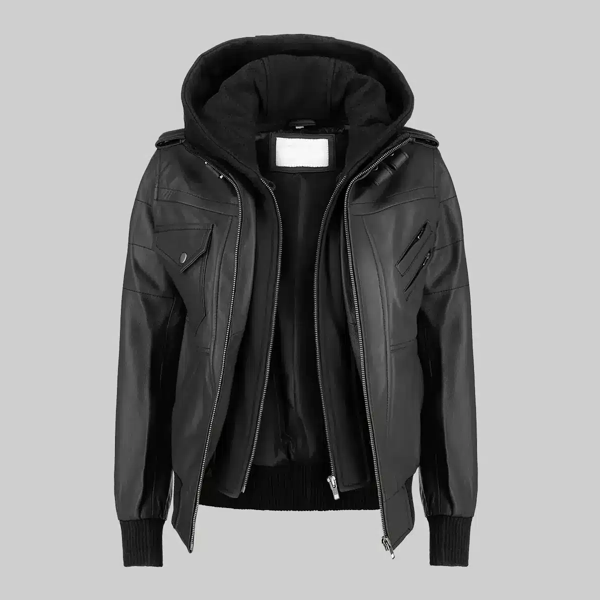 Shop Fred Men’s Black Hooded Biker Leather Jacket