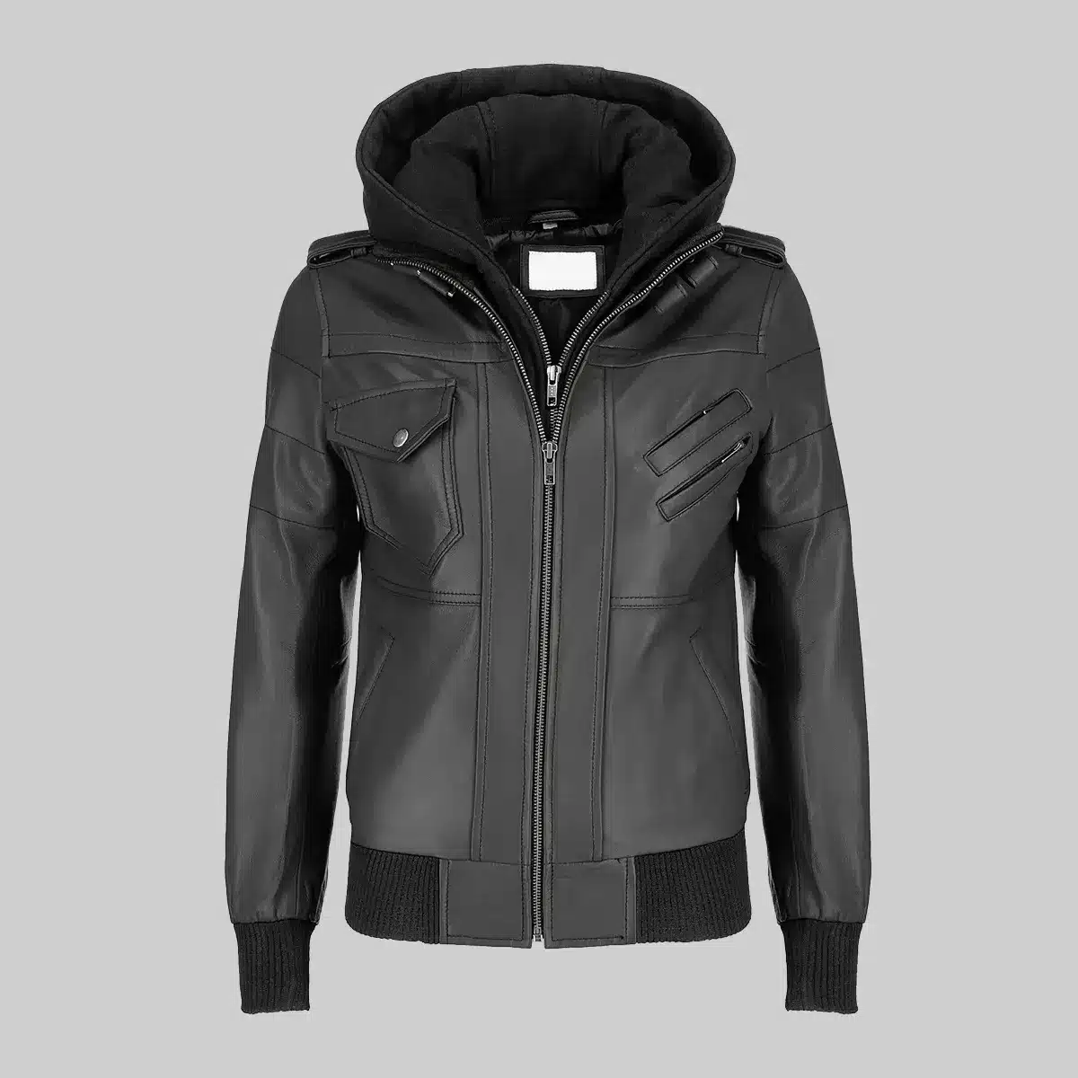 Fred Men’s Black Hooded Biker Leather Jacket