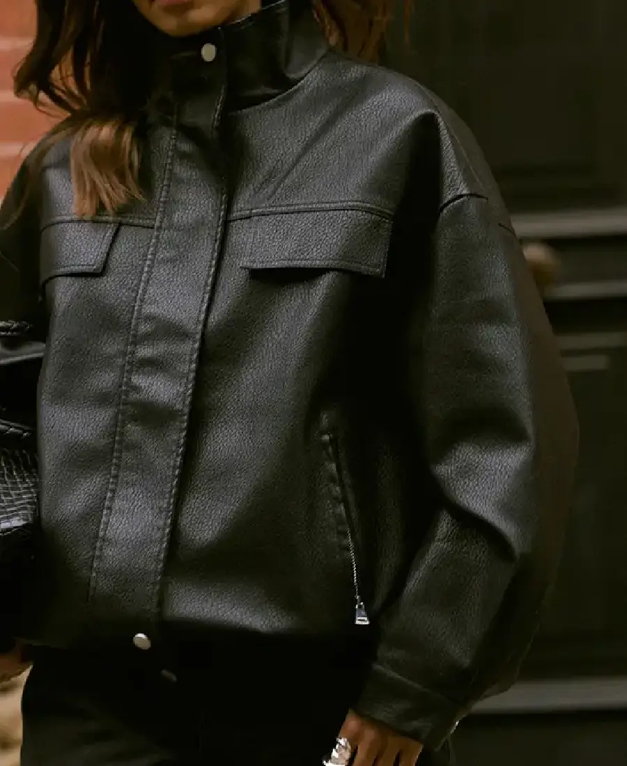 The Funnel Neck Black Faux Leather Jacket is made from faux leather in a classic black color that gives it a clean and bold look for everyday wear. It features a stand up collar that adds extra coverage around the neck, along with a front zipped closure with snap placket that provides a secure front. Full length sleeves are finished with snap button cuffs for an adjustable feel on the wrists. The inside includes viscose lining that allows comfortable wear for long hours. Designed with two side pockets and one inner pocket, this jacket provides space for carrying small essentials while keeping a sharp modern biker inspired style.