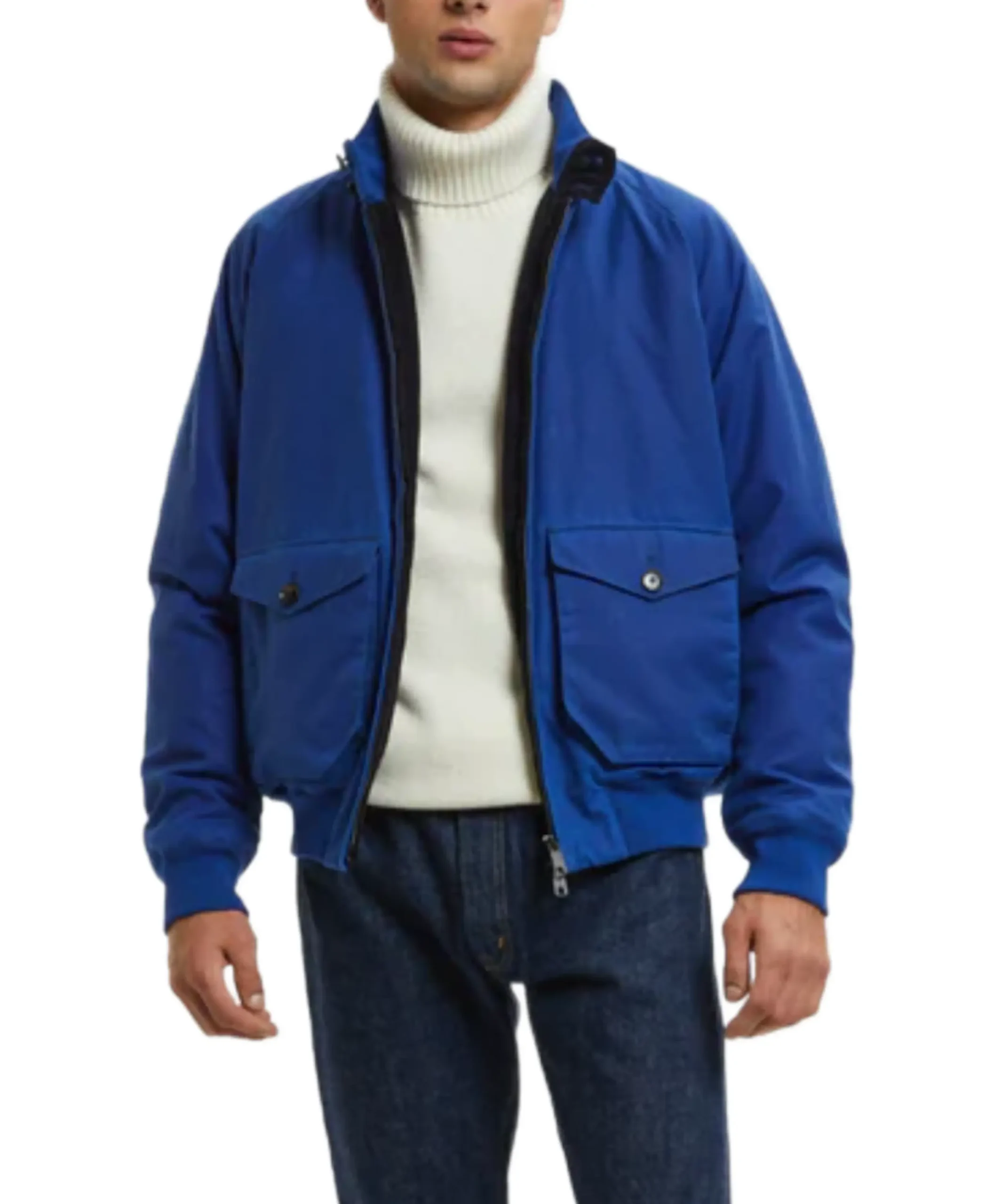 The G9 Waxed Blue Bomber Jacket is crafted from quality cotton with a waxed finish that adds durability and character to the fabric, while the viscose lining ensures comfortable wear throughout the day. It features an erect collar that gives the jacket a structured bomber look, paired with a secure zipped front closure for easy wear. The full length sleeves are finished with zipped cuffs, allowing a more adjustable and defined fit around the wrists. Two front flap pockets provide practical storage space for your essentials while enhancing the classic bomber style. Finished in a deep blue shade, this jacket delivers a bold yet refined casual look that stands out without trying too hard.