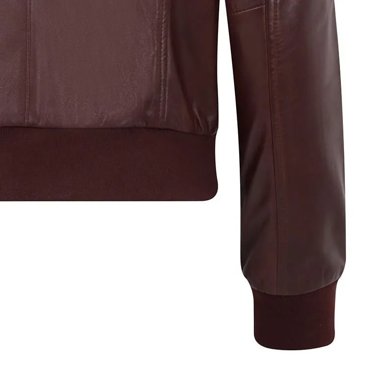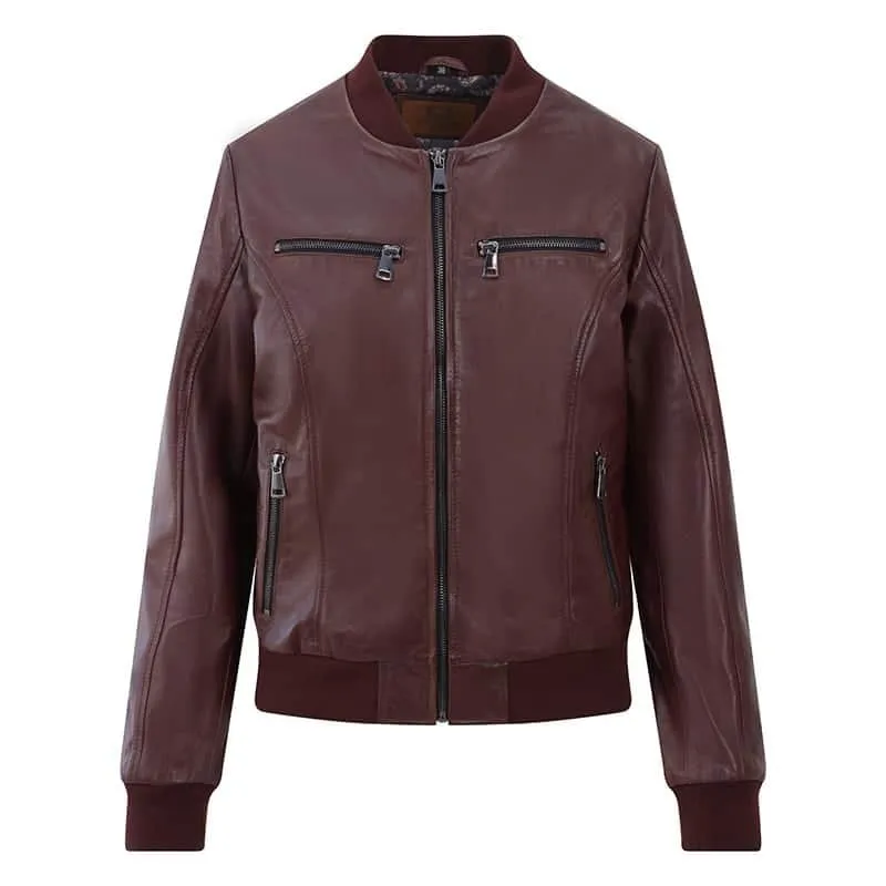 Gabby Dark Brown Bomber Leather Jacket