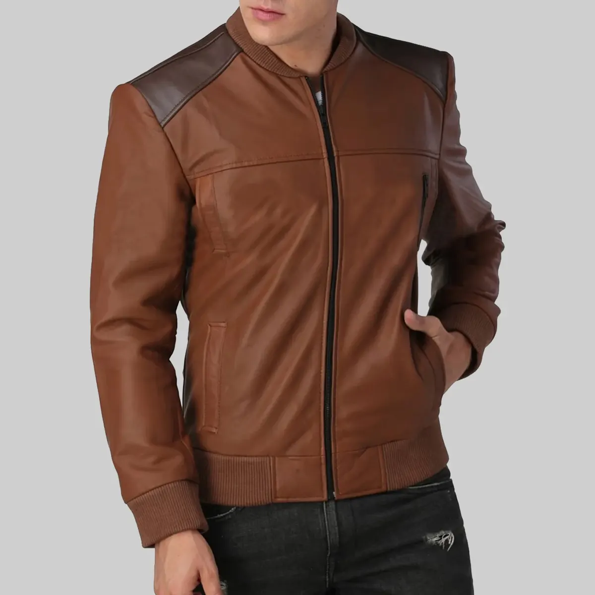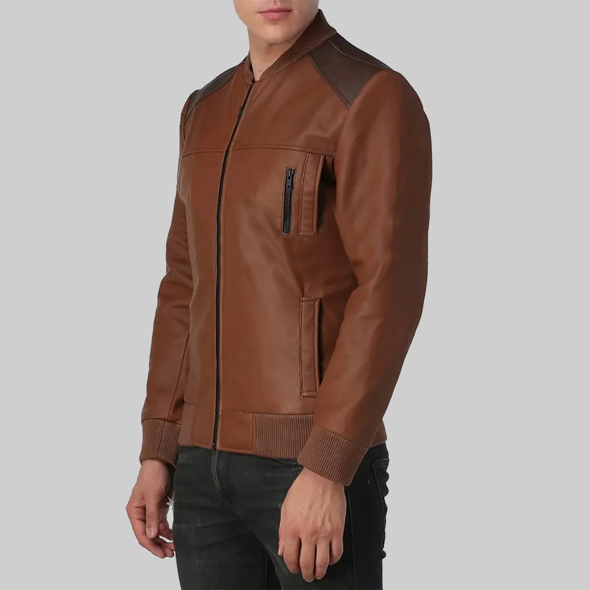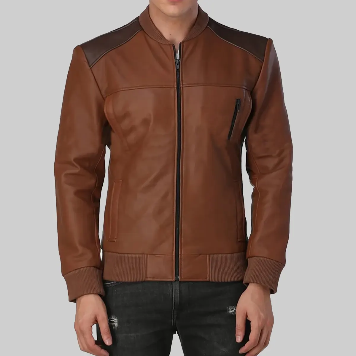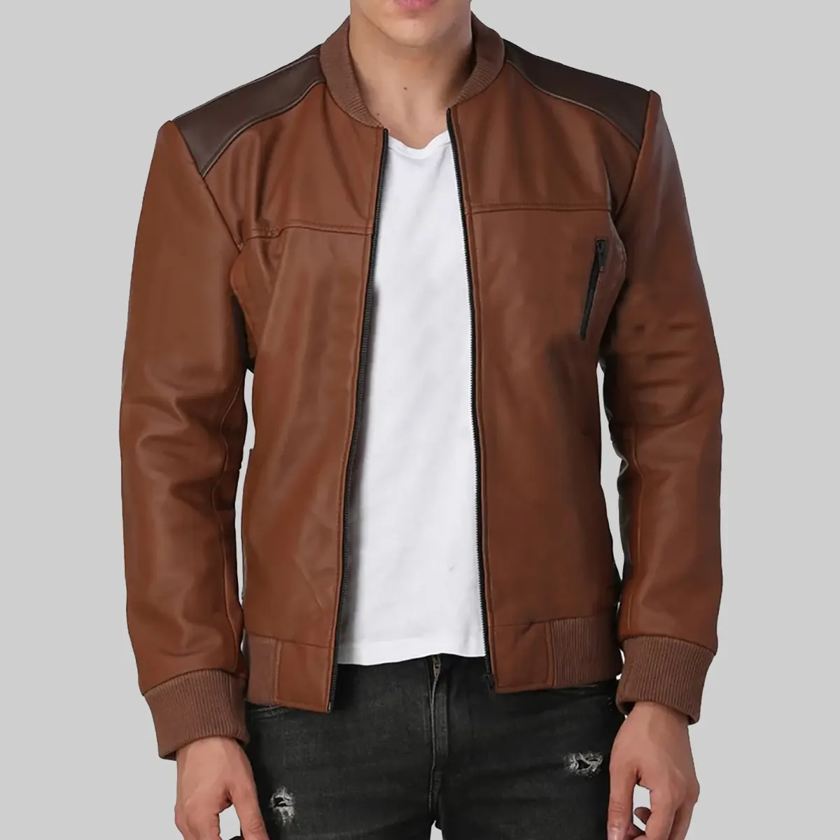 Shop TheGeorge Mens Brown Bomber Leather Jacket