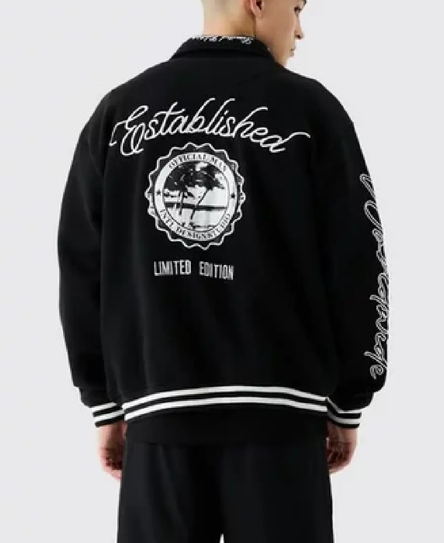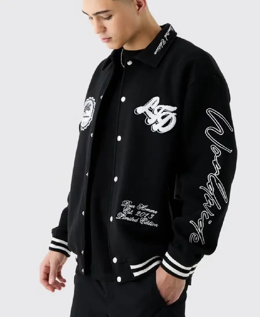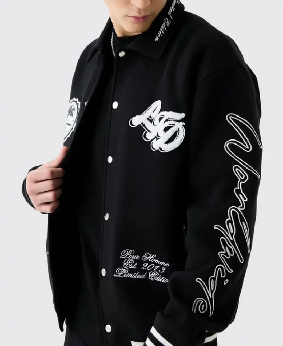 Harrington Oversized Embroidered Jersey Bomber Jacket
