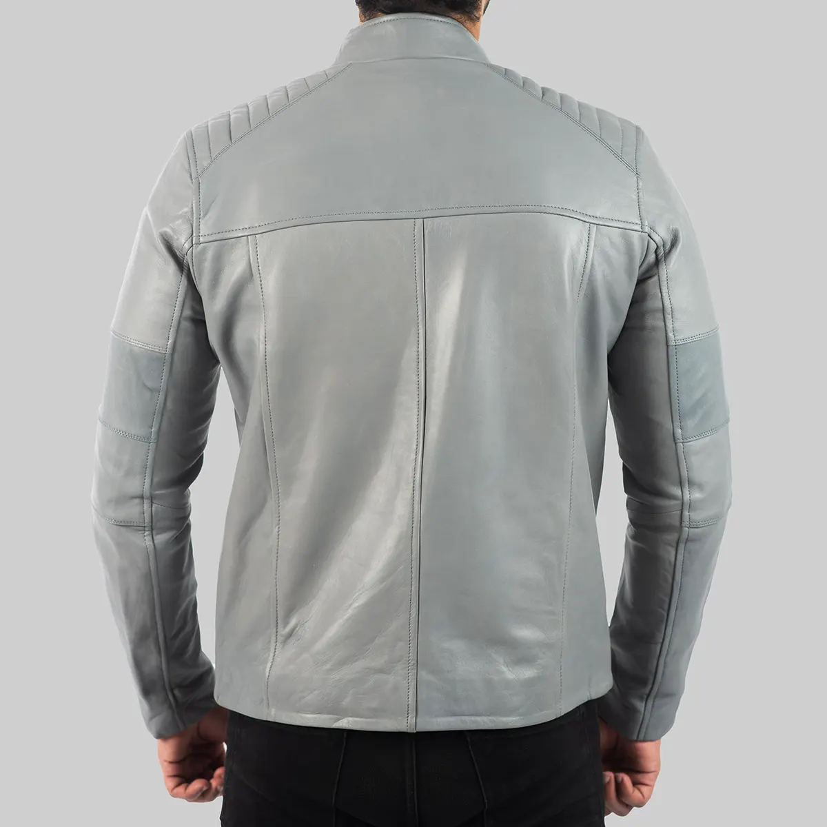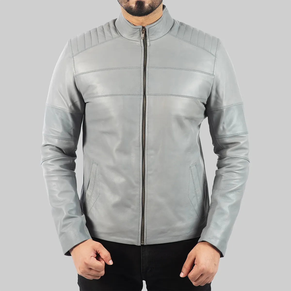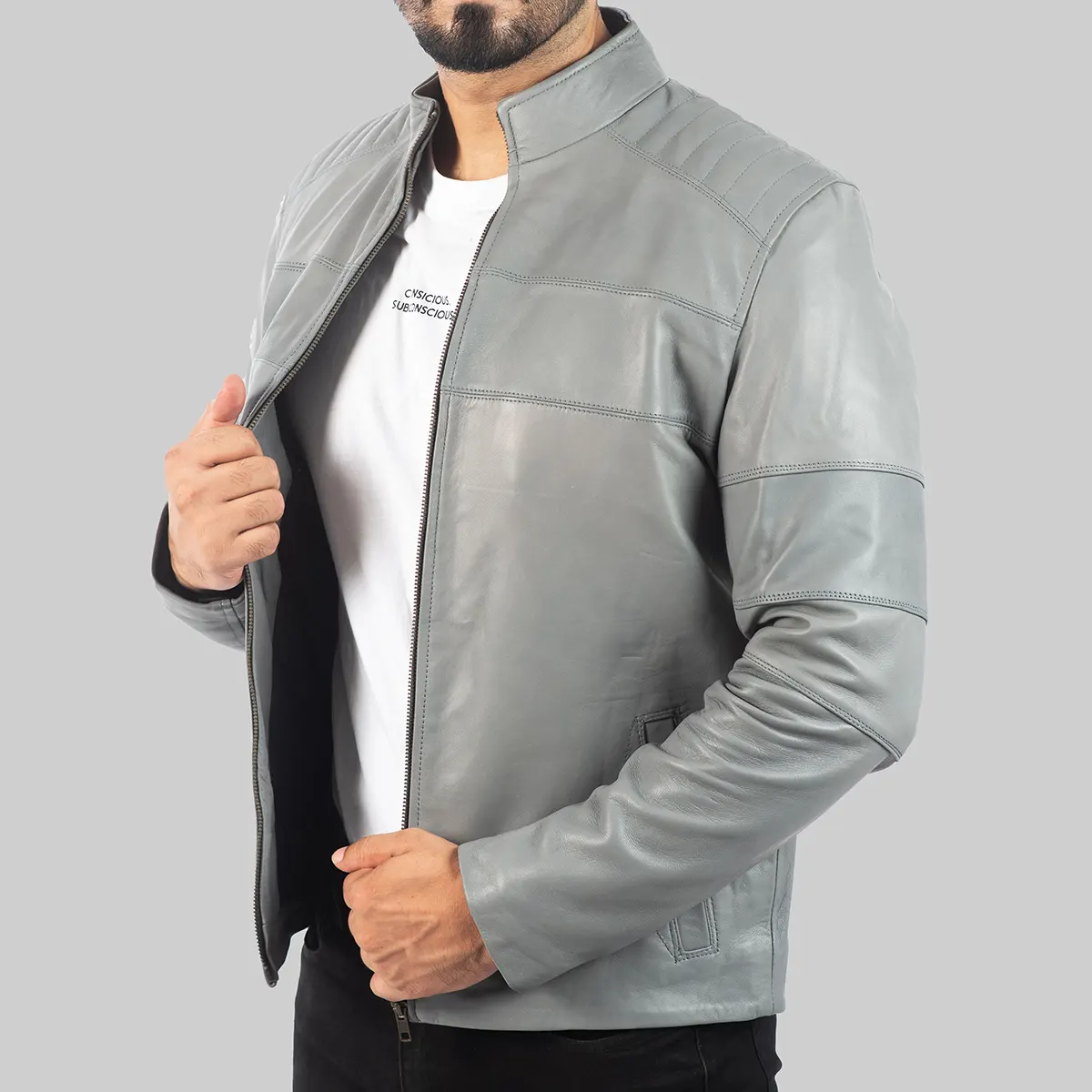 Shop TheHarry Men’s Grey Leather Biker Jacket