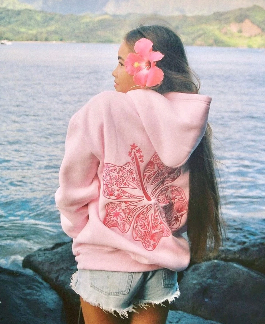 The bold hibiscus flower print adds an eye-catching design element, instantly transporting you to the islands. Made from premium, soft fabric, this hoodie feels great against your skin, offering both warmth and breathability. Its relaxed fit allows for all-day comfort without feeling too tight or restrictive, while still providing a flattering silhouette.