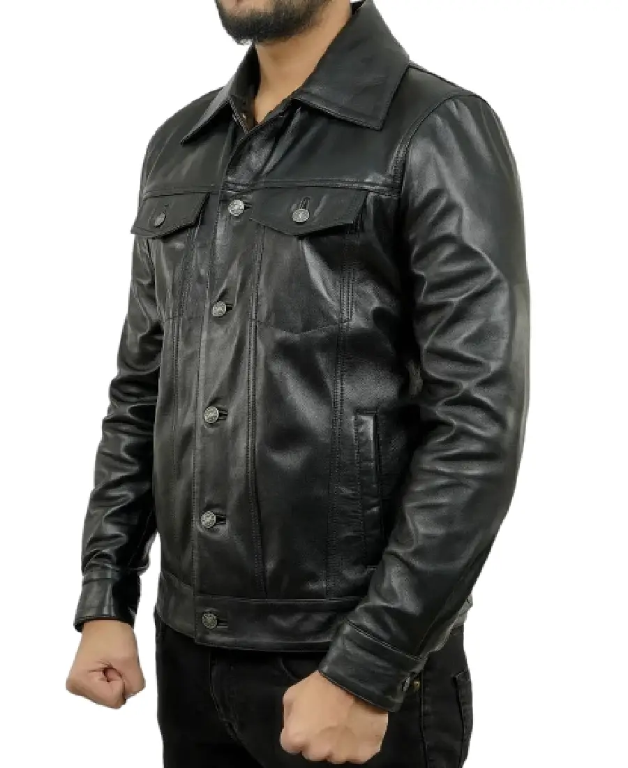 Really impressed with this jacket. The Holland Black Trucker has a good leather and solid stitching. Trendy Leather Jackets delivered a piece that feels stylish and comfortable.
