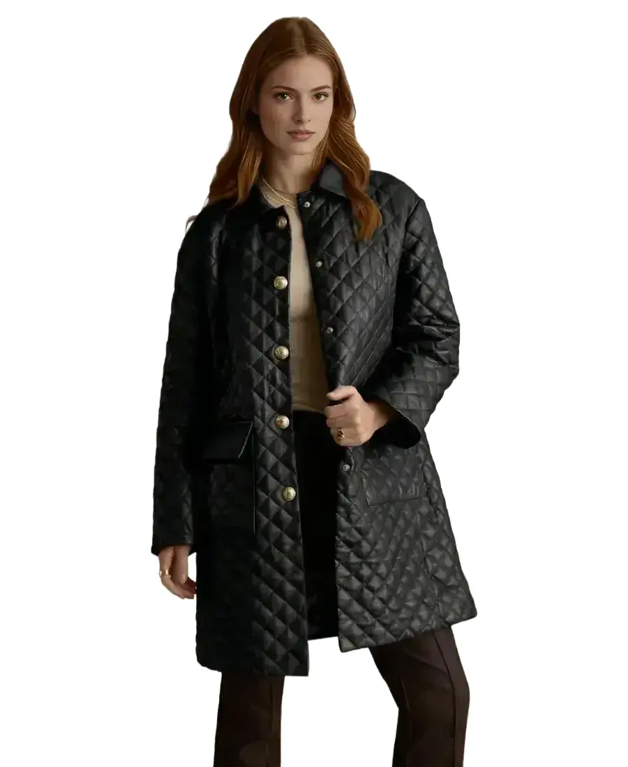 The Holland Quilted Black Leather Coat combines structure and design in a way that stands out in any wardrobe. Made from genuine leather it carries a sturdy yet soft feel that adapts well with wear. The shirt style collar frames the neckline neatly while the full length sleeves with open hem cuffs give room for movement and layering. Snap buttons run down the front allowing for secure closure and adding a subtle touch to the overall look. Inside, the viscose lining keeps the coat lightweight and easy to wear throughout the day. Two flap pockets on the outside and an inner pocket provide practical storage for essentials without disrupting the coat’s silhouette. The deep black color adds a strong presence to any outfit making it suitable for both day and