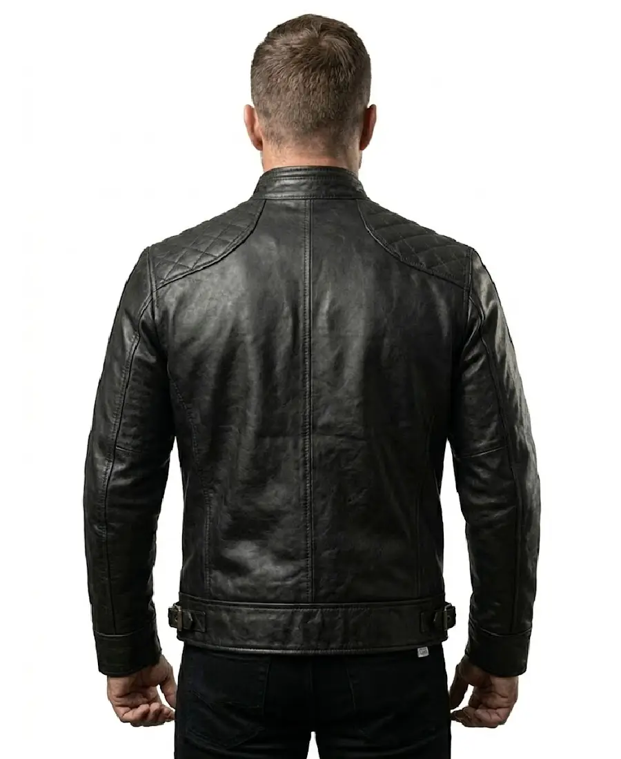 The Ionic Black Motorcycle Leather Jacket is crafted from genuine leather that delivers a tough and durable feel with a bold black finish suited for rider inspired style. It features a belted collar that adds a strong biker edge, paired with a sturdy front zip closure for secure fastening. Full length sleeves are designed with open hem cuffs, allowing comfortable movement while maintaining the classic motorcycle look. Inside, a soft viscose lining enhances comfort for extended wear. The jacket includes four front pockets that provide ample space for everyday essentials, along with two inner pockets for added convenience and secure storage. This piece combines functionality with a powerful road ready attitude, making it a solid choice for both riding and street wear.